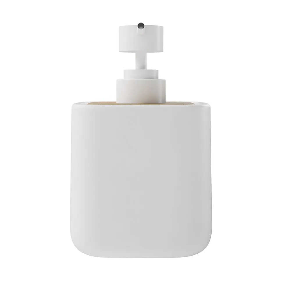 Distributeur de savon en céramique et bambou, blanc, GoodHome Cervia