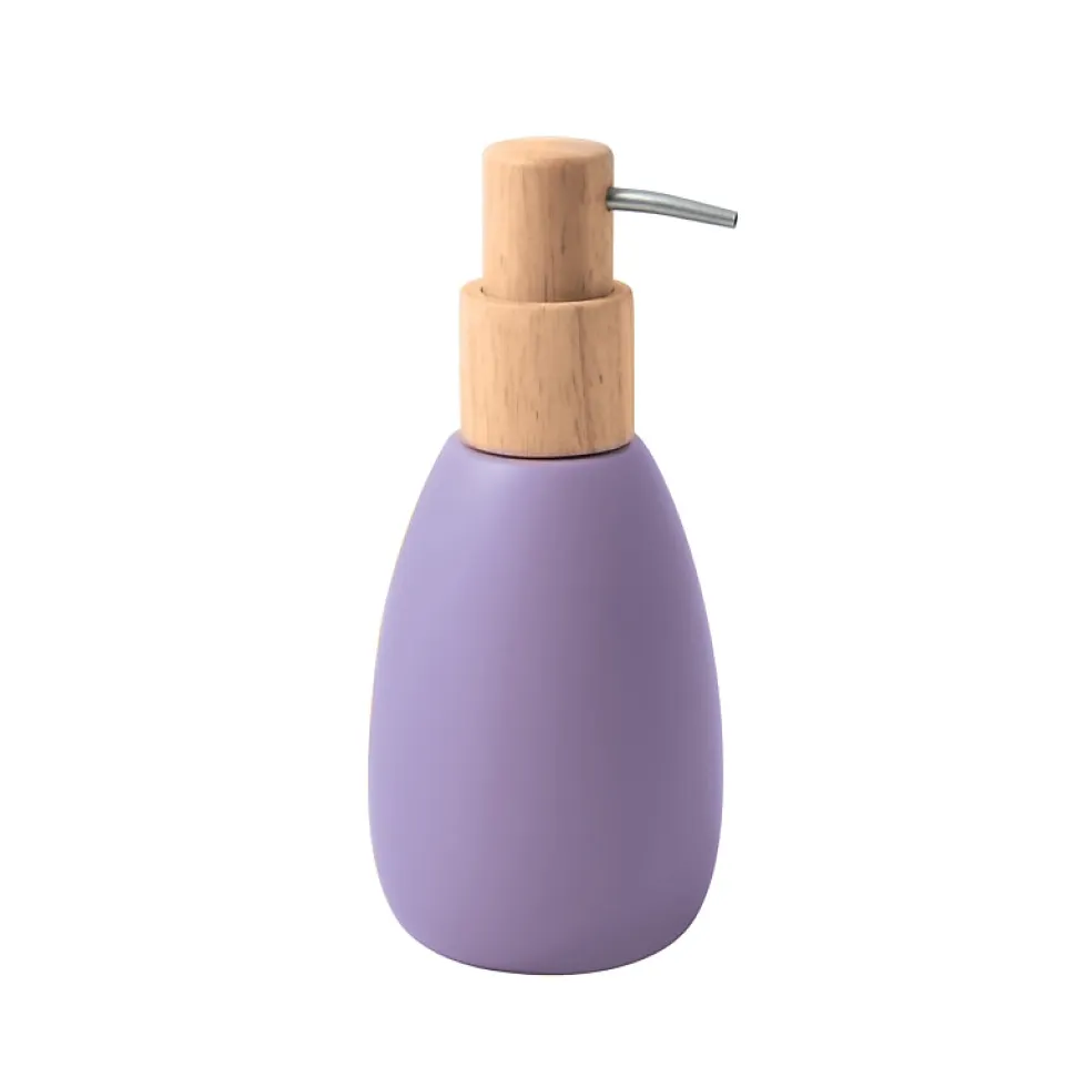 Distributeur de savon Spirella. Couleur lavande et une touche de bois pour une ambiance chic et chaleureuse. Le distributeur de savon de la gamme SVEN est un accessoire intemporelle qui s’inscrit dans les tendances actuelles. Sa fonctionnalité et son design fait de lui un accessoire indispensable du quotidien.Dimensions: 18×8.2cm Couleur: Lavande Matière: Polyrésine