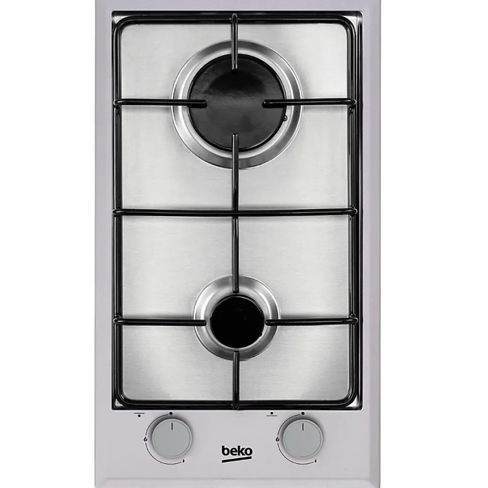 La plaque gaz BEKO HDCG32220FX offre deux foyers, une surface inox durable, un allumage électronique rapide, une sécurité par thermocouple et une conception compacte pour optimiser les petits espaces.