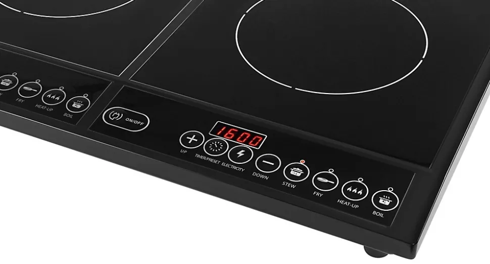 La plaque à induction est un appareil pratique doté de deux zones de cuisson, permettant une préparation rapide et facile des repas. Grâce à la technologie à induction moderne, elle garantit une efficacité énergétique optimale et une cuisson homogène des aliments.Le modèle propose quatre modes de fonctionnement : cuisson, friture, maintien au chaud et ébullition. Il est également doté d’une minuterie pour un contrôle plus précis de la cuisson et un confort d’utilisation accru.CARACTÉRISTIQUES DU PRODUIT :Deux zones de chauffageGrande surface de chauffePuissance réglable jusqu’à 2000 W4 programmes de fonctionnement : cuisson, friture, réchauffage, cuisson Fonction minuterieTechnologie à induction économe en énergie Idéal pour la maison et les voyagesDONNÉES TECHNIQUES :⚙️ Type d’appareilPlaque à induction⚙️ Puissance maximale2000 W⚙️ Nombre de brûleurs2⚙️ Alimentation électrique230 V / 50 Hz⚙️ Modes de fonctionnementPlat, Friture, Chauffage, Cuisson⚙️ Fonctionnalités supplémentairesMinuterie, régulation de puissance⚙️ CommandesÉlectronique (panneau tactile)⚙️ Plage de champ magnétique12-28 cm
