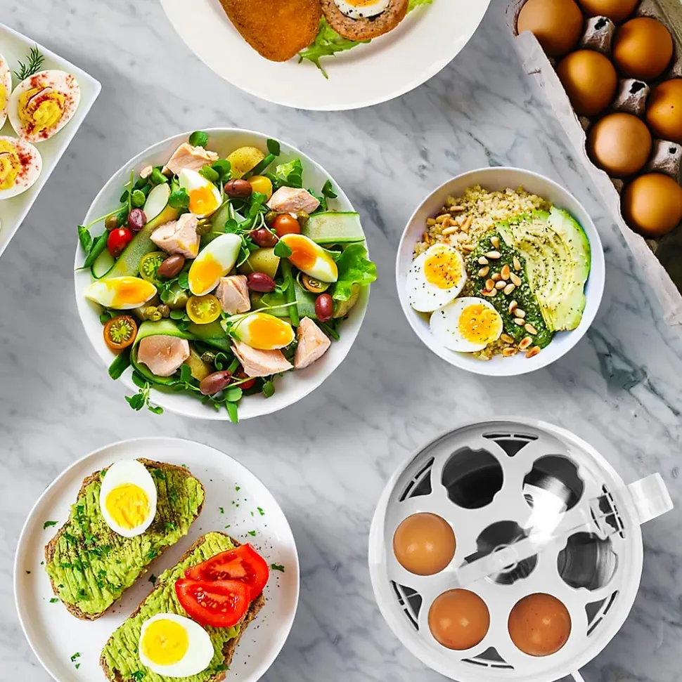 Découvrez le cuiseur à œufs EB27 de Duronic. Avec une puissance de 400W, cet appareil polyvalent offre une capacité impressionnante de 7 œufs, répondant à tous vos besoins de cuisson. Explorez les fonctionnalités avancées telles que le minuteur pratique, la fonction de maintien au chaud et le signal sonore en fin de cuisson pour obtenir des œufs parfaits à chaque fois.Ce cuiseur à œufs vous permet de choisir entre des œufs à la coque tendre, moyens ou durs à l’aide de l’interrupteur prévu. Le minuteur sonore émettra un signal distinctif à la fin de la cuisson, assurant des résultats précis. Les coupes en œuf supplémentaires offertes avec l’appareil ajoutent une touche de polyvalence, permettant la préparation d’œufs pochés.L’EB27 propose une expérience de cuisson incomparable avec son minuteur sonore qui émet un signal distinctif à la fin du processus, vous assurant des œufs parfaitement cuits à chaque fois. Contrôlez la dureté des œufs en ajustant la quantité d’eau, offrant une personnalisation totale de votre cuisson. La fonction de maintien au chaud prolonge la fraîcheur de vos œufs, et la protection contre l’ébullition à sec garantit une utilisation sûre et fiable.Le couvercle transparent en PC du cuiseur à œufs EB27 vous permet de surveiller facilement la cuisson de vos œufs. L’appareil dispose de pieds antidérapants pour la stabilité, et une fonction de rangement de câble pour un rangement facilité. Les œufs sont cuits en toute sécurité grâce à la protection contre la surchauffe et à la fonction d’arrêt automatique, offrant une tranquillité d’esprit supplémentaire.Avec une taille compacte de 20,3 x 18 x 22,8 cm, ce cuiseur à oeufs s’intègre facilement dans votre cuisine. D’autres modèles de cuiseurs à œufs sont disponibles: les m