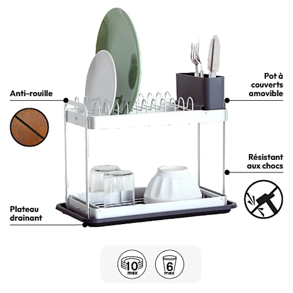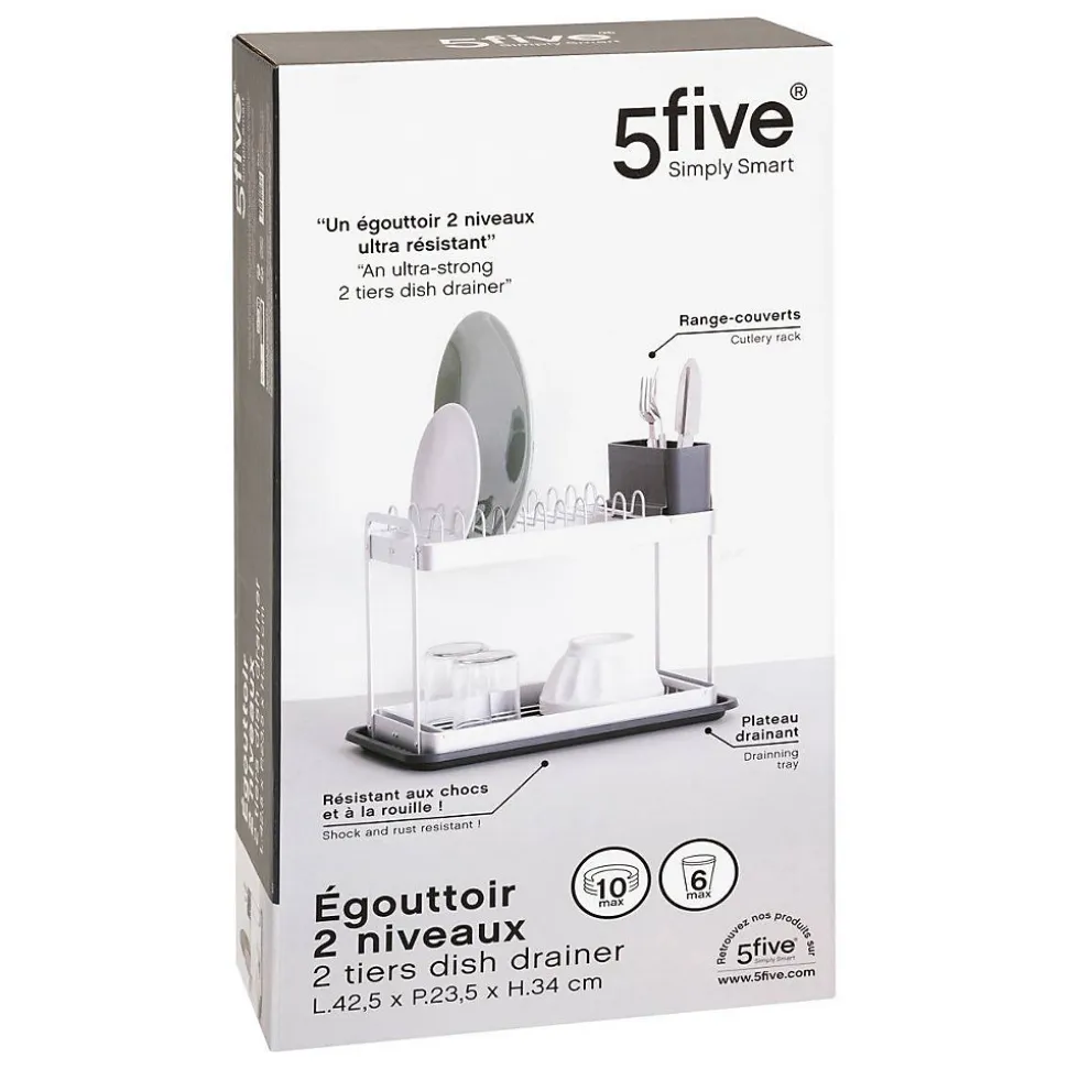Égouttoir 2 niveaux gris 42,5×23,5cmContenu : 1 égouttoirDimensions : L. 42 x P. 23.2 x H. 35 cmColoris : BlancMarque : 5 five simply smart
