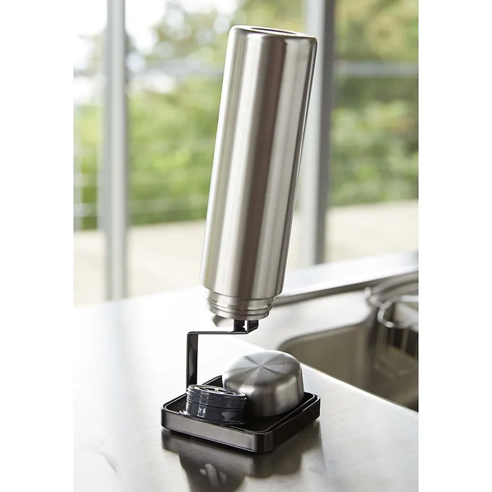 Aspect : Coloris = Noir • Matériau principal = Acier • Matériaux secondaires = Polypropylène • Dimensions : Hauteur (en cm) = 30 • Longueur (en cm) = 10 • Profondeur (en cm) = 10 • Autres caractéristiques : Livré en kit = Oui • Poids (en kg) = 0,35 • Egouttoir à bouteilles Stand