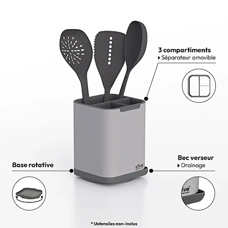 Égouttoir à couverts/ustensiles « Néo » grisContenu : 1 potDimensions : D. 13 x H. 18.7 cmColoris : GrisMarque : 5 five simply smart