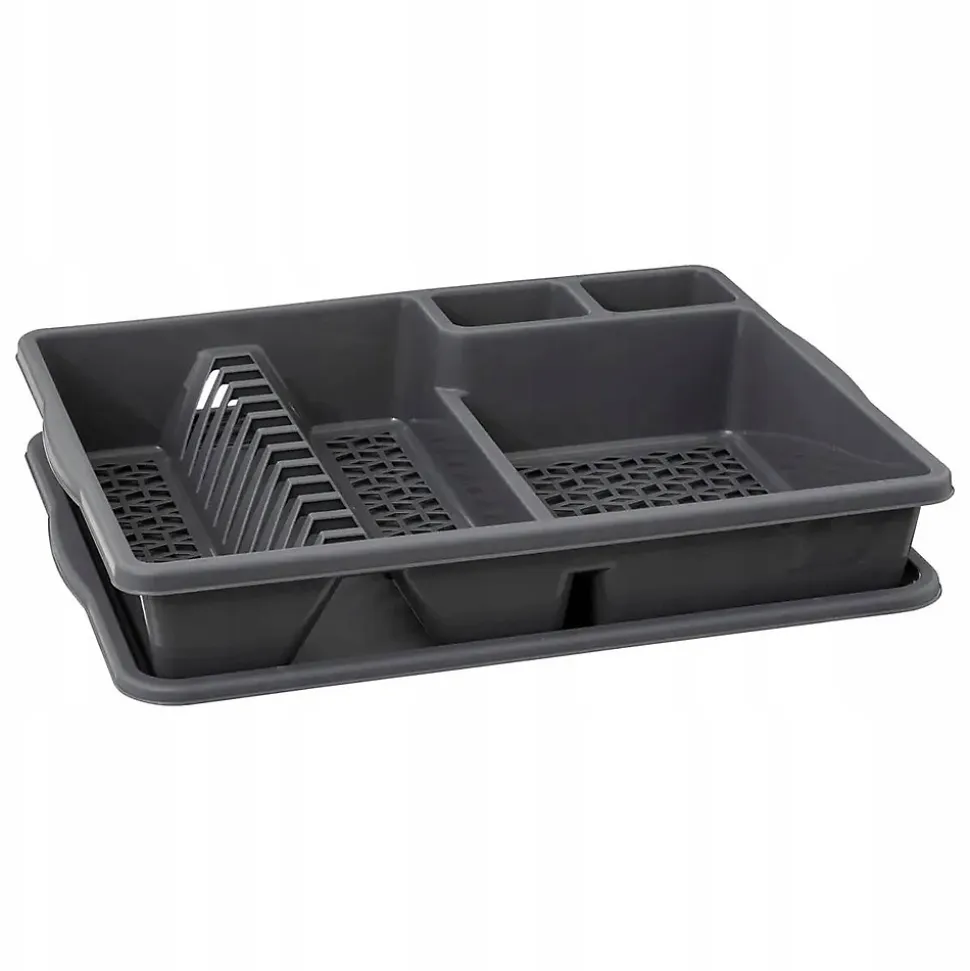 Egouttoir à vaisselle Pratique avec son plateau récupérateur d'eau Matiere: PVC Dimension: L. 38 x P. 47,5 x H. 9 cm Coloris peut etre gris clair ou gris fonce…