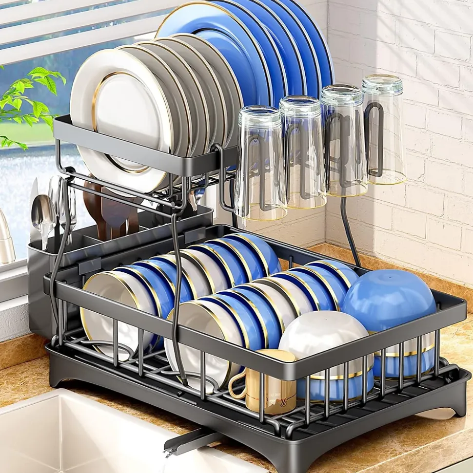 Égouttoir à Vaisselle Détachable à 2 Niveaux noir