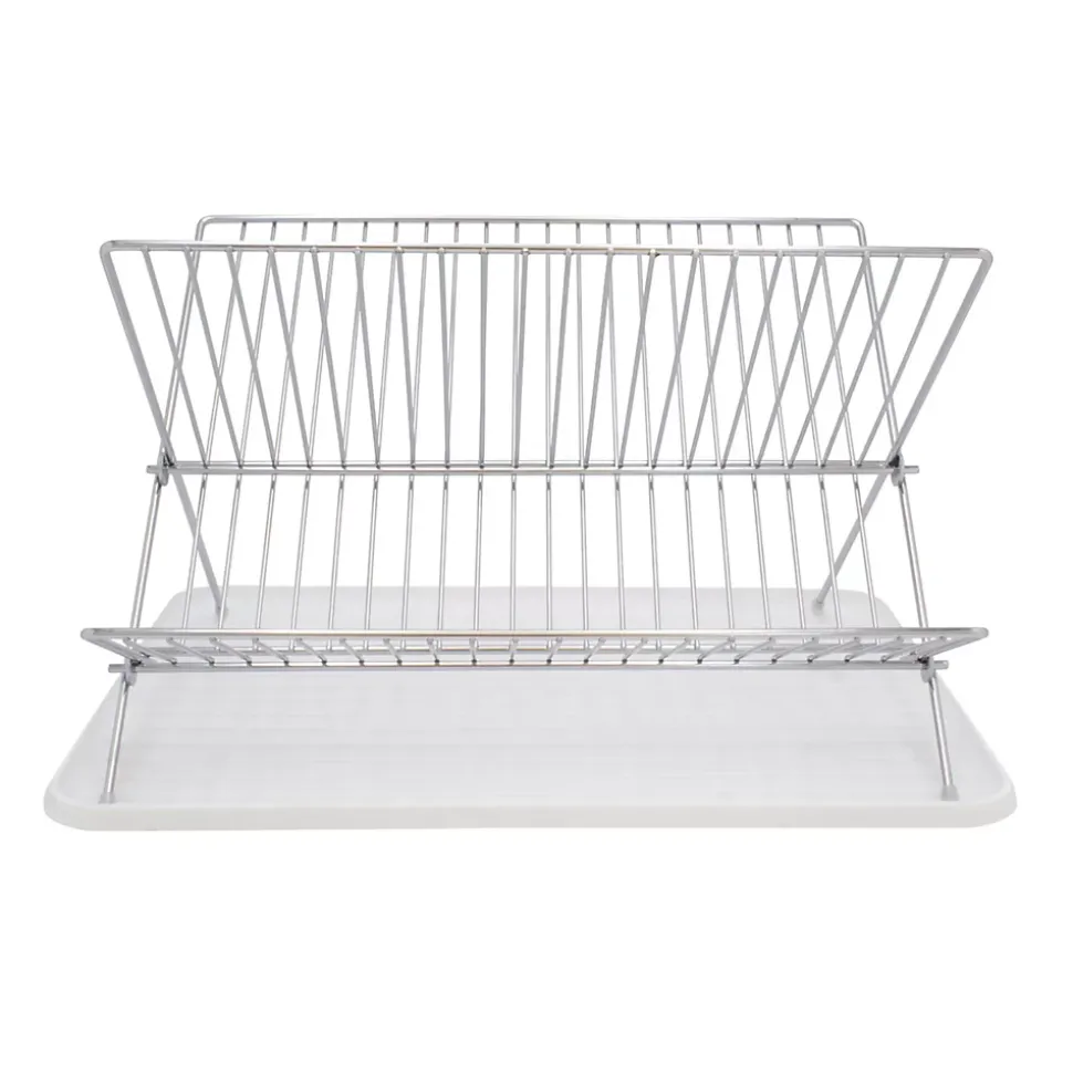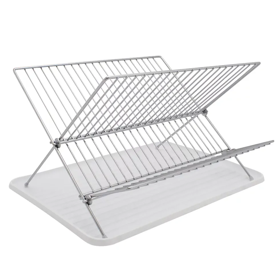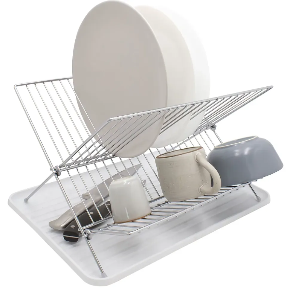 Egouttoir à vaisselle métal et plastique avec bac blanc Box & Beyond