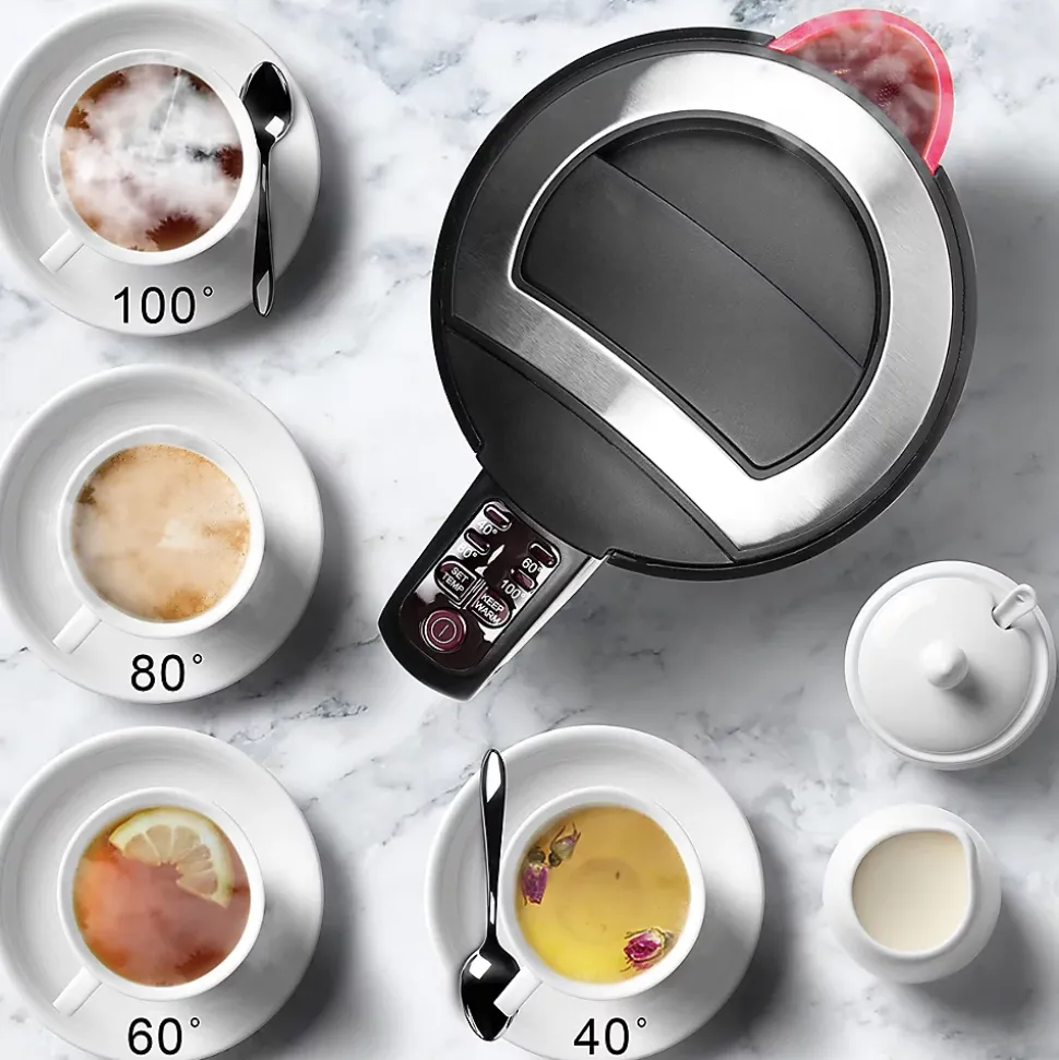 La bouilloire a une puissance de chauffe de 3000W grâce à laquelle votre eau atteindra la température souhaitée plus rapidement : vous consommerez donc moins d’énergie et attendrez moins longtemps ! De plus, cette bouilloire vous permet de sélectionner une température parmi 40° / 60° / 80° / 100° ce qui vous aidera à respecter les recommandations pour chaque boisson. En effet, tous les thés et cafés nécessitent une température différente et bien précise, sans quoi l’arôme est altéré.Avec l’EK30 de Duronic, vous pouvez également décider de garder l’eau à la température sélectionnée pendant 30 minutes. Si, pendant ce délai, la température baisse de 2° alors la bouilloire chauffera l’eau pour que celle-ci revienne à la température souhaitée. Cette fonction est idéale pour les utilisateurs intensifs, ceux qui aiment se servir une deuxième tasse ou les lieux de passage comme un environnement professionnel.La bouilloire bénéficie d’une fenêtre et de mesures sur chaque côté afin qui vous puissiez jauger la quantité d’eau disponible. La base à 360° signifie que la bouilloire peut être posée dans n’importe quel sens: pratique pour les gauchers aussi bien que les droitiers et plus encore pour ceux qui ont du mal à se réveiller. Réalisée en acier inoxydable et en plastique, la bouilloire a une double paroi afin d’éviter les fuites, plutôt communes sur les modèles à simple paroi.Toutes les bouilloires nécessitent un nettoyage régulier afin de retirer les dépôts de calcaire contenu dans l’eau. Pour vous assurer une boisson de qualité, un filtre en acier inoxydable et à mailles fines permet d’écarter certaines impuretés. Cette bouilloire est également équipée d’une protection anti-surchauffe afin qu’elle ne puisse se mettre en route si la quantité d’eau est inférieure à 0,5 L. Ce modèle est disponible en noir et blanc. Idéal pour thés, cafés, chocolats chauds, pâtes, etc.