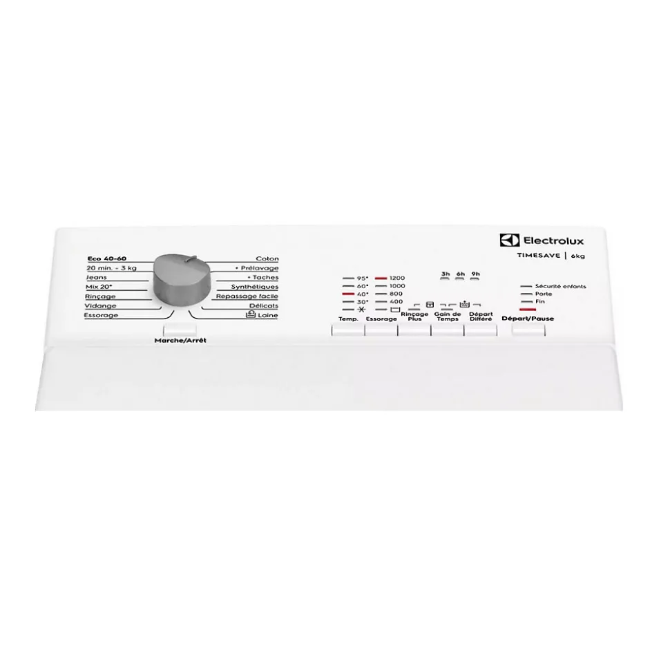 Le lave-linge top Electrolux EWQ6412B offre une capacité de 6 kg et un volume de tambour de 42 litres. Classé B en efficacité énergétique, il dispose de 11 programmes de lavage et d’une option de rinçage supplémentaire pour un nettoyage optimal. Son départ différé jusqu’à 9 heures offre une grande flexibilité. Le moteur à induction assure une consommation optimisée, et sa vitesse d’essorage maximale de 1200 t/min contribue à réduire le temps de séchage. Compact, il mesure 89 x 40 x 60 cm.