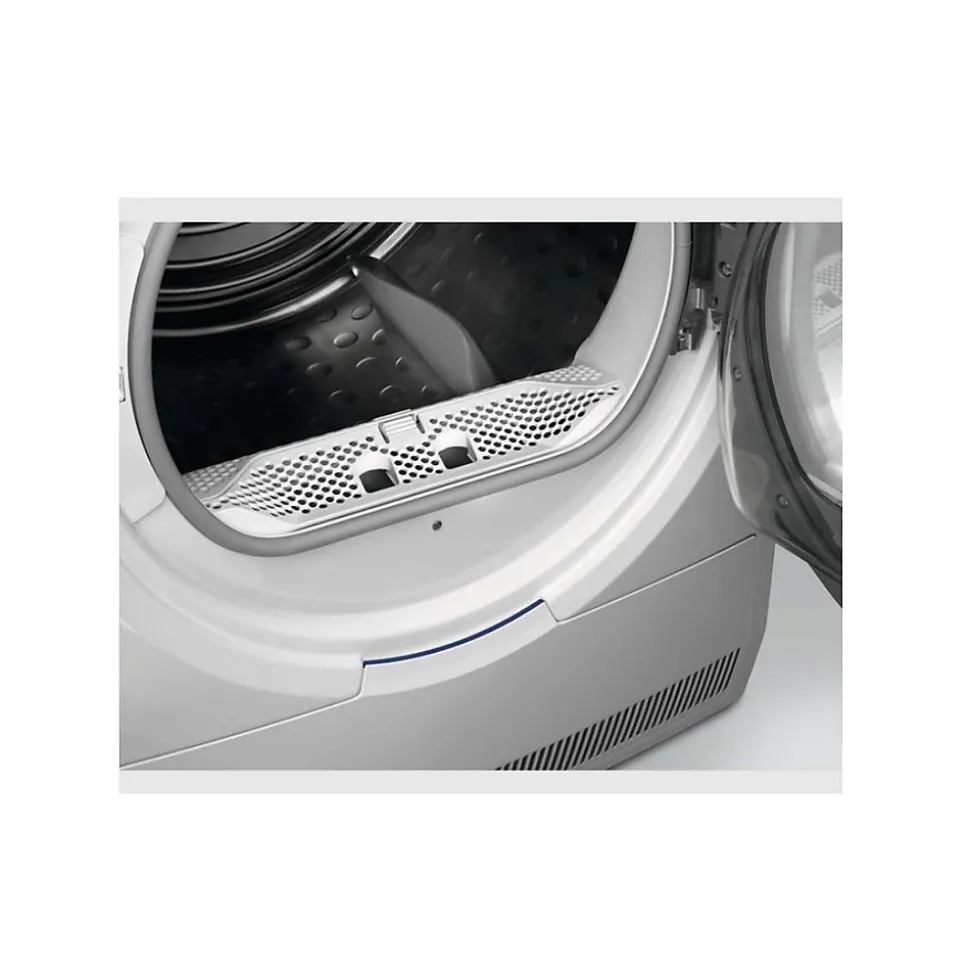 Sèche-linge pompe à chaleur Electrolux SimpliCare EDHF4812AC : capacité 8 kg, classe énergétique A++ (ancienne étiquette), tambour 118 L, séchage basse température (max. 54°C) pour un soin délicat des textiles, pompe à chaleur, sondes OptiSense, départ différé jusqu’à 20 h, hublot réversible, bac d’eau 5,32 L, indicateurs de filtre/condenseur.