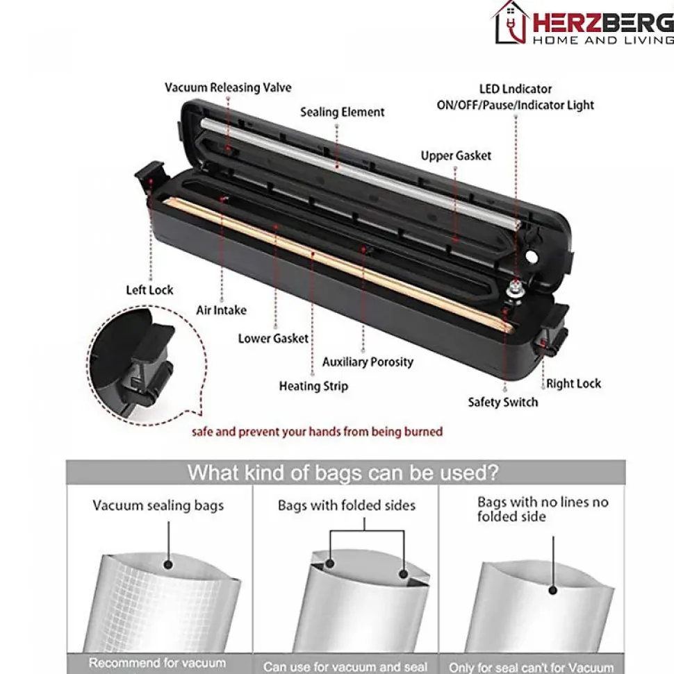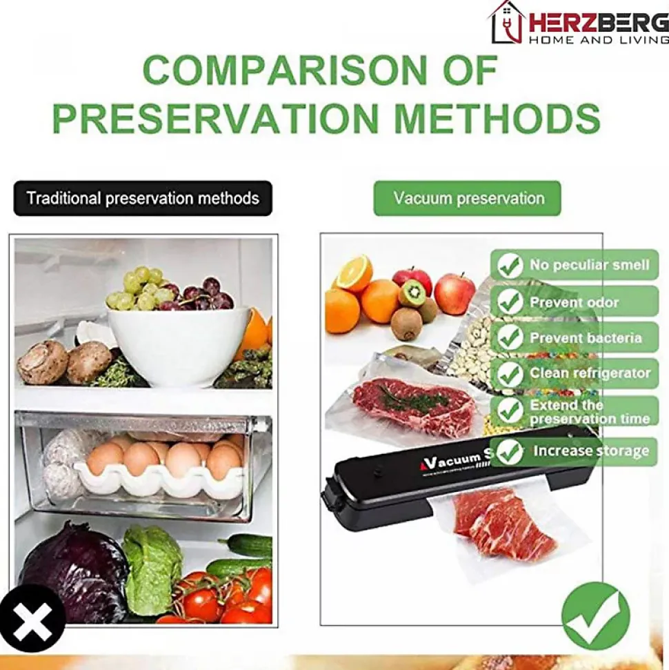 Le mode de scellage sous vide automatique à une touche et le mode de scellage manuel del’appareil Herzberg HG8103 sont parfaits pour l’emballage sous vide et l’emballage SEAL engénéral. Même les aliments moelleux peuvent être parfaitement scellés en combinant les deuxmodes.Caractéristiques :Mode de scellage sous vide automatique à une toucheÉlimine les brûlures de congélationFacile à utiliserréduit la détérioration des alimentsPortable et compactFacile à utiliserÉconomie d’énergieAnti-humiditéPeut garder vos aliments fraisPeut être utilisé pour les aliments secs et humidesSpécification:Nom de marque : HerzbergCouleur : NoirLED : OuiHauteur : 34,50 cmLargeur : 6,48 cmLongueur : 3.99 cmContenu:1 x Scelleuse sous vide
