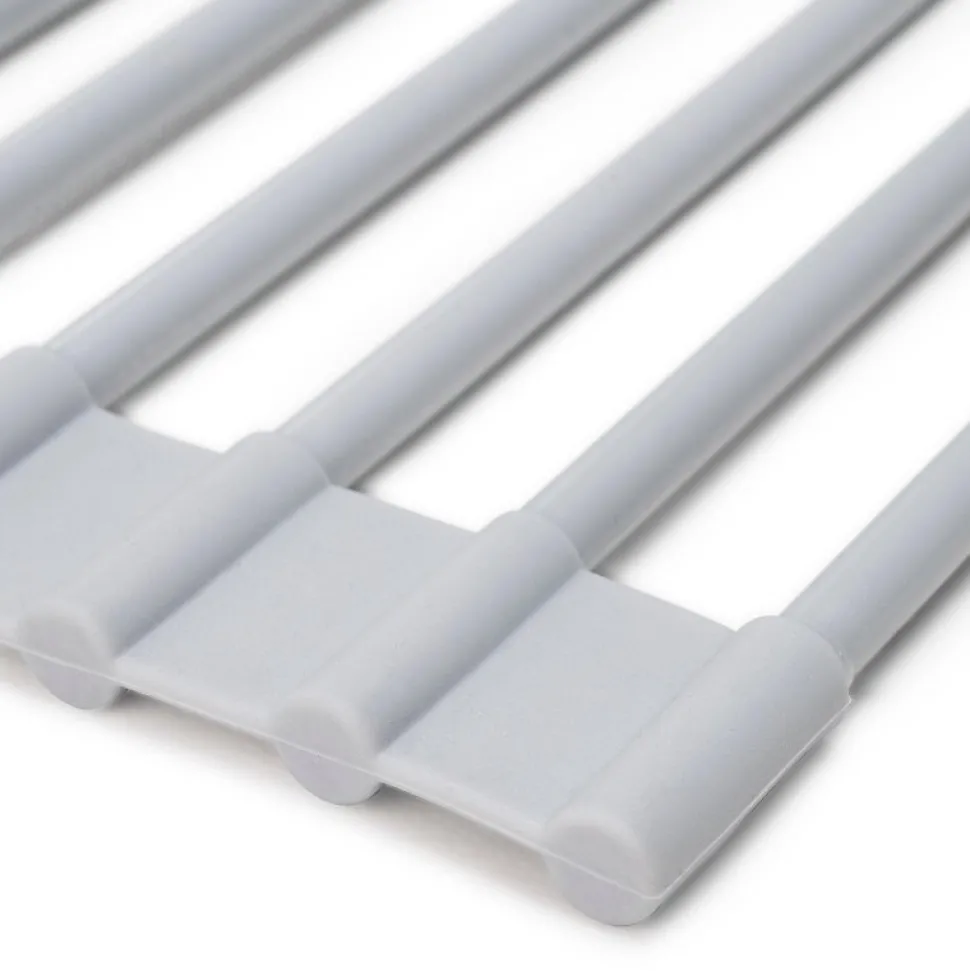 Égouttoir à vaisselle idéal pour égoutter et sécher à l’air la vaisselle, les verres et les ustensiles de cuisine.Économise de l’espace en étant flexible et enroulable. Installation simple.Il peut être utilisé comme dessous de plat pour contenir une casserole chaude ou des articles surgelés car il résiste aux températures de -30º à 230º.Mesure 330 x 520 mm. Veuillez mesurer la taille de votre évier pour vérifier qu’il convient.Supporte jusqu’à 14 kg. Fabriqué en acier et silicone en gris. VOIR LES MESURES DU PRODUIT DANS LES IMAGES. Égouttoir à vaisselle flexible et enroulable avec supports pour assiettes et verres en acier et silicone gris. Améliorez et optimisez l’espace dans votre cuisine grâce à sa flexibilité et sa facilité d’installation. Il peut être utilisé comme dessous de plat pour contenir une casserole chaude ou des articles surgelés car il résiste aux températures de -30º à 230º. Supporte jusqu’à 14 kg et mesure 330 x 520 mm. Veuillez mesurer la taille de votre évier pour vérifier qu’il convient.