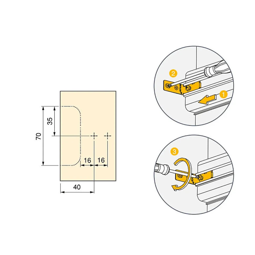 - Conçu pour les systèmes d’ouverture sans poignées, offrant une apparence moderne et épurée.