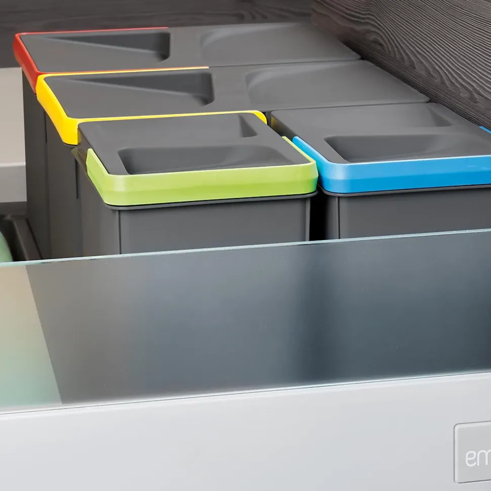 Le kit Emuca 8939323 permet un tri sélectif simple et organisé dans votre tiroir de cuisine grâce à ses 4 poubelles de différentes capacités. Facile à intégrer et à nettoyer, il optimise l’espace tout en contribuant à une gestion efficace des déchets.