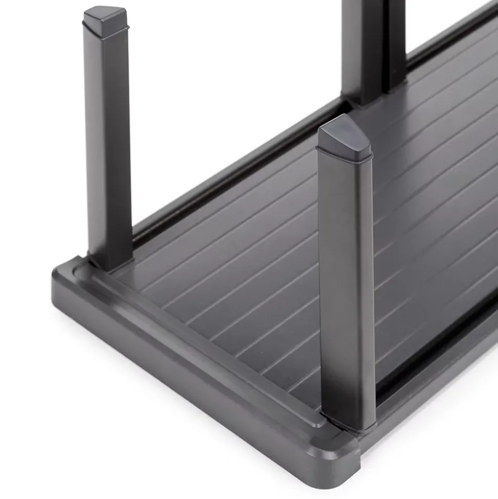 Le porte-assiettes vertical Orderbox vous permet de garder votre cuisine bien rangée et organisée, en économisant du temps et d’espace. C’est une excellente option pour ceux qui cherchent à garder les plats organisés et en sécurité dans les tiroirs. Ses dimensions de 159×468 mm lui permettent de s’adapter à la plupart des tailles de tiroirs de cuisine. Avec cette capacité, il est possible de placer deux colonnes de plats superposés, ce qui optimise l’espace de stockage disponible. Les séparateurs réglables vous permettent d’organiser vos plats en fonction de leur taille et de leur forme, en les empêchant de glisser et de se casser. Fabriqué en aluminium et plastique ABS, avec une élégante couleur gris anthracite et un design moderne et minimaliste.