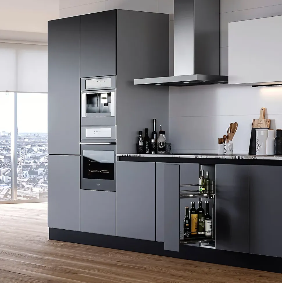 Le Porte bouteilles latéral extractible SupraMax de la marque Emuca est un module robuste en acier chromé avec fermeture amortie, conçu pour un accès facile et une organisation optimale des bouteilles dans les meubles bas de cuisine, idéal pour les petits espaces. Il offre une capacité de charge jusqu’à 30 kg et un réglage total de la porte pour une installation précise.