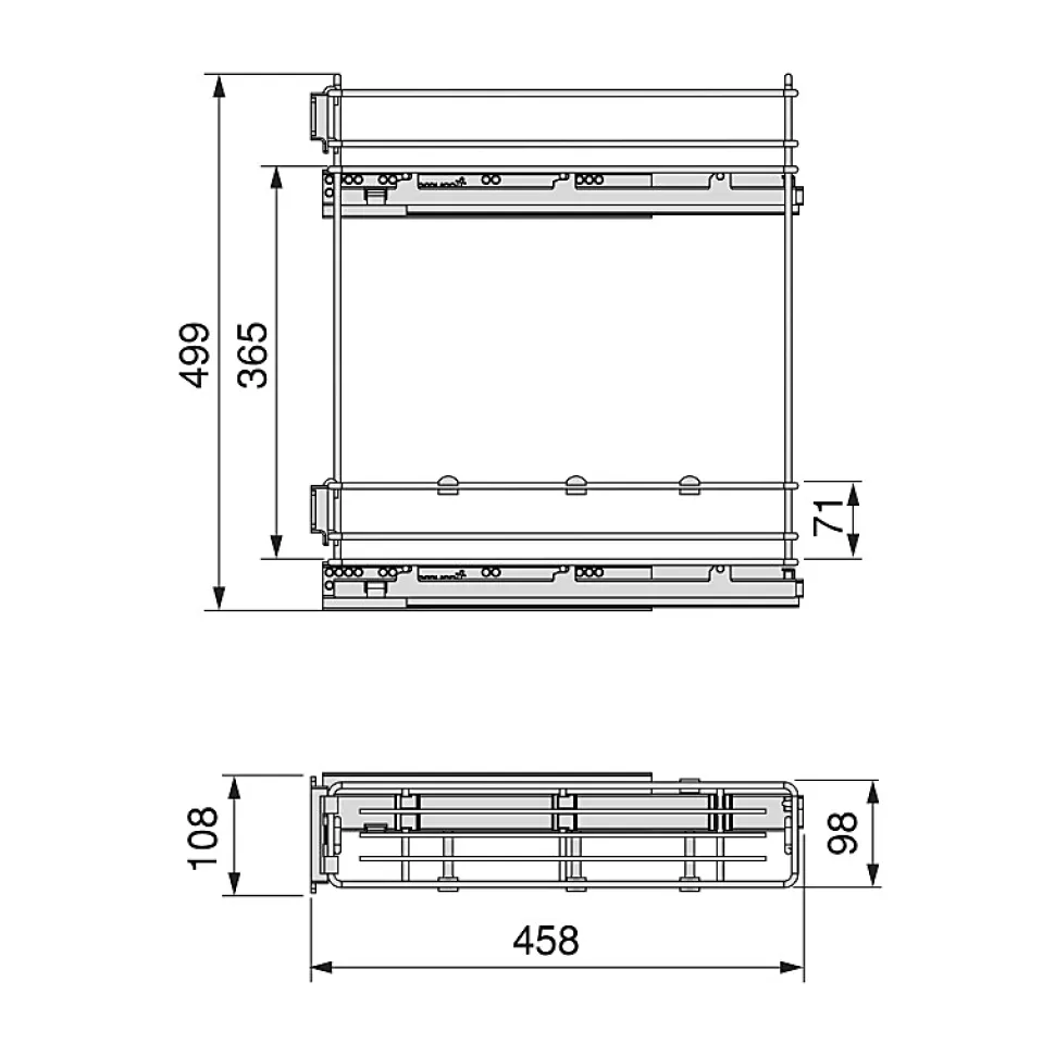 Rangement coulissant pour bouteilles de cuisine avec deux paniers et 3 séparateurs pour le panier inférieur.Valable pour les modules d’une largeur intérieure minimale de 112 mm et d’une profondeur minimale de 460 mm. Compatible avec les modules avec des panneaux de 16, 18 et 19 mm.Capacité de charge jusqu’à 30 kg et ajustement total de la porte (5D). Réglage de ±2,5 mm sur les côtés, ±2,25 mm en profondeur et jusqu’à 13 mm en hauteur.Montage facile sur le côté gauche au moyen de 2 guides à rouleaux avec extraction totale et fermeture en douceur.Structure élégante en acier chromé et cloisons en plastique gris. VOIR LES MESURES DU PRODUIT DANS LES IMAGES. Porte-bouteilles extractible SupraMax pour meubles bas de cuisine en acier chromé, idéal pour les petits espaces ou les meubles d’appoint. Facile à installer : La fixation se fait sur le côté gauche de l’élément et permet un réglage total de la porte (5D), ±2,5 mm sur les côtés, ±2,25 mm en profondeur et jusqu’à 13 mm en hauteur.La structure est en acier chromé à 2 niveaux et comprend des guides à rouleaux à extraction totale et à fermeture douce qui permettent au système de glisser en douceur et d’éviter les claquements. Le panier inférieur comprend 3 séparateurs en plastique gris pour l’organisation des bouteilles. Capacité de charge jusqu’à 30 kg.