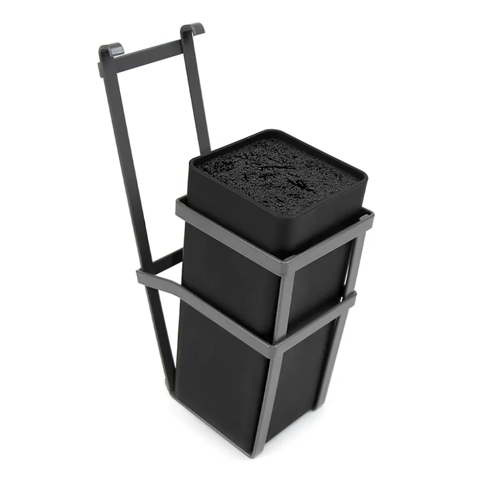 Porte-couteaux design et fonctionnel avec mélange de titane, acier et plastique gris anthracite. Design épuré et compact, idéal pour cuisines contemporaines. Fentes protégées et système anti-dérapant pour sécuriser les couteaux. Facile à nettoyer, surface résistante aux taches et aération pour hygiène optimale.