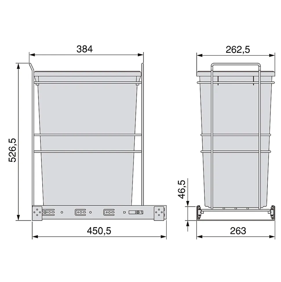 Le bac de recyclage amovible Recycle est idéal pour séparer et classer les déchets ménagers. Sa structure est dotée de guides à billes à extraction totale et fermeture amortie pour un accès manuel aux seaux. Il se caractérise par sa facilité d’installation vissé sur la partie inférieure du module avec les vis incluses dans le produit. Il est valable pour les modules dont les dimensions utiles minimales sont de 264 mm de large, 452 mm de profondeur et 528 mm de haut. Il dispose d’une poubelle d’une capacité de 35 litres. Il est fait d’acier et de plastique avec une élégante finition gris anthracite.