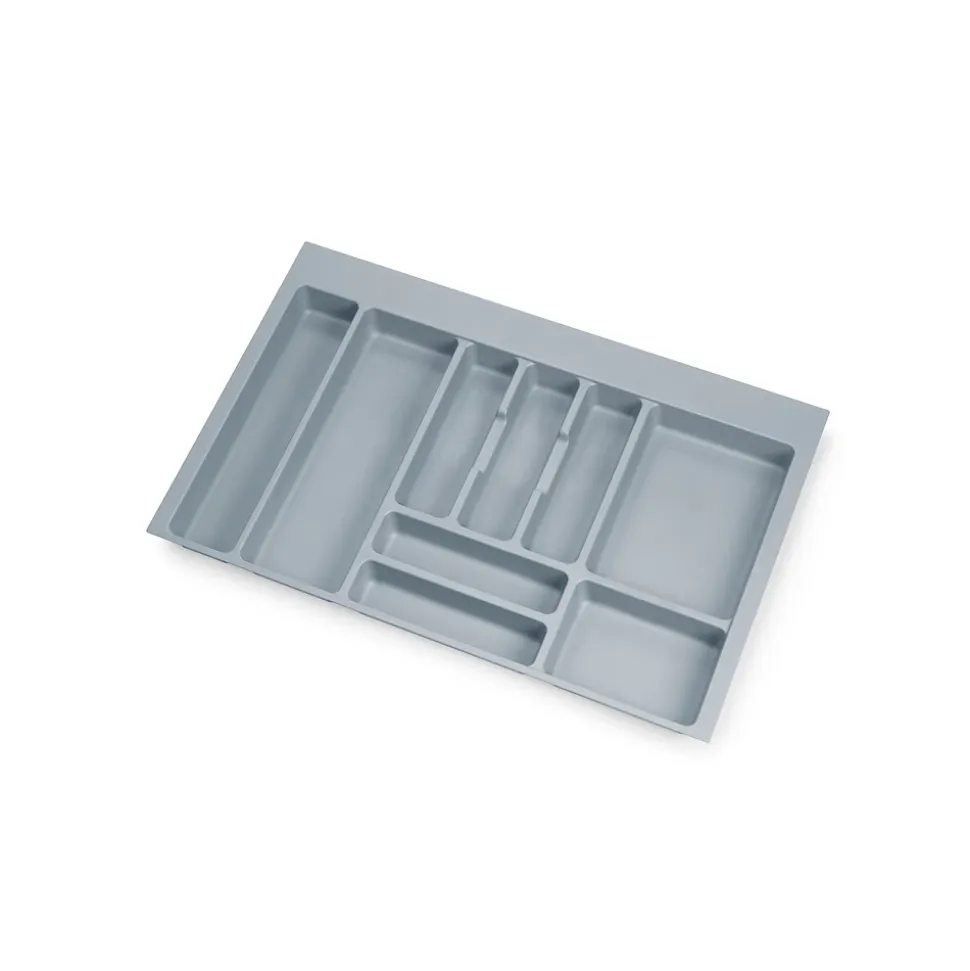 Range-couverts de 736x482mm dimensionné pour tiroirs de module de largeur 800 mm.Convient pour des profondeurs de tiroirs comprises entre 450 mm et 500 mm avec des épaisseurs de planches comprises entre 16 mm et 19 mm.Découpable pour s’adapter à des profondeurs entre 418 mm et 482 mm et des largeurs entre 700 mm et 736 mm.Plateau à couverts avec 9 compartiments pour couteaux, cuillères, fourchettes et tous types de couverts. Pour stocker et organiser les couverts dans le tiroir de la cuisine.Fabriqué en plastique gris. VOIR LES MESURES DU PRODUIT DANS LES IMAGES. Range-couverts pour tiroirs universels de la cuisine, à lignes droites et grande capacité de stockage pour les couverts et autres ustensiles de la cuisine, qui permet de profiter au maximum de l’espace. Comme ils sont recoupables, il peuvent être adaptés pour installation dans les tiroirs pour modules de largeur standard entre 400 mm et 900 mm, de profondeur entre 450 mm et 500 mm avec de panneau d’épaisseurs comprises entre 16 mm et 19 mm selon le modèle sélectionné.