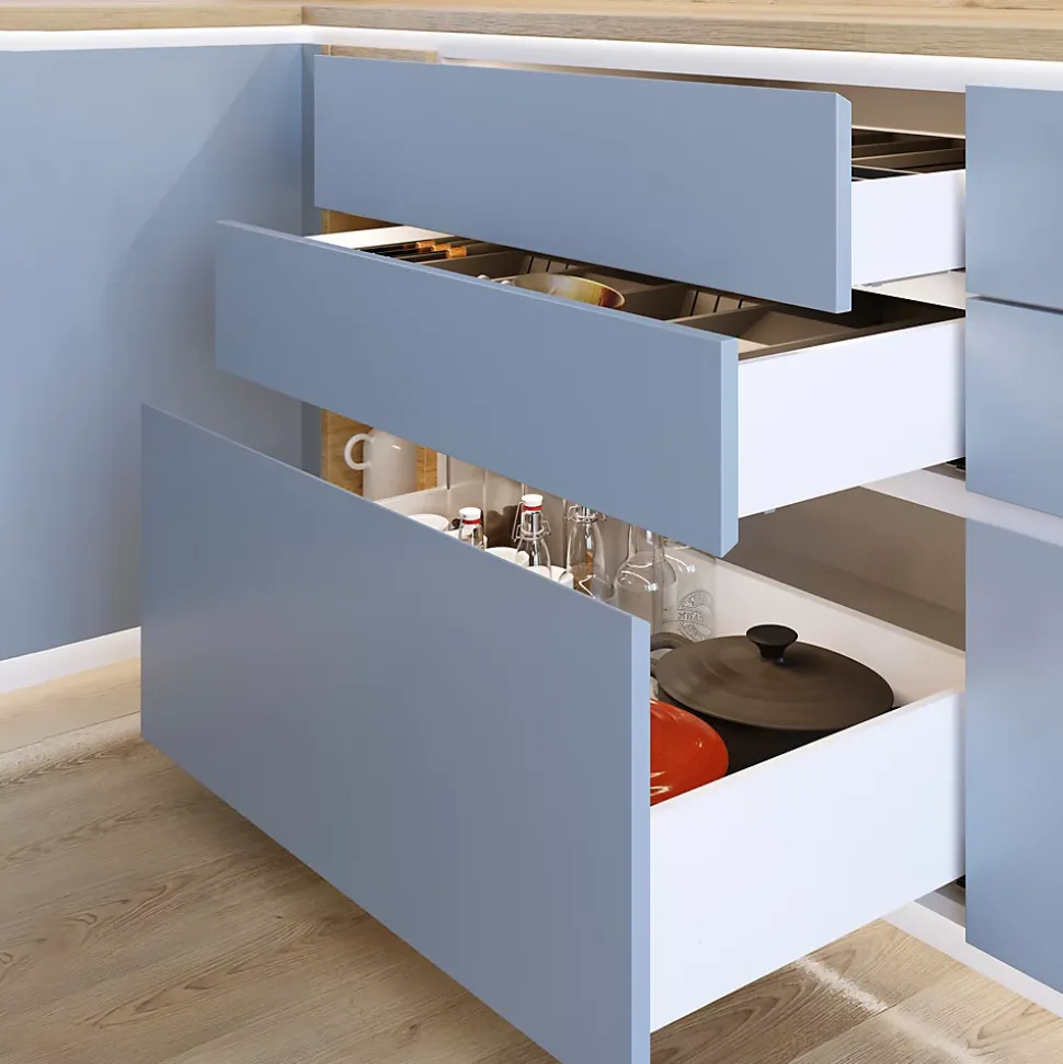 - Coulisses montées sur carcasse avec extraction synchronisée pour un fonctionnement fluide et stable.
