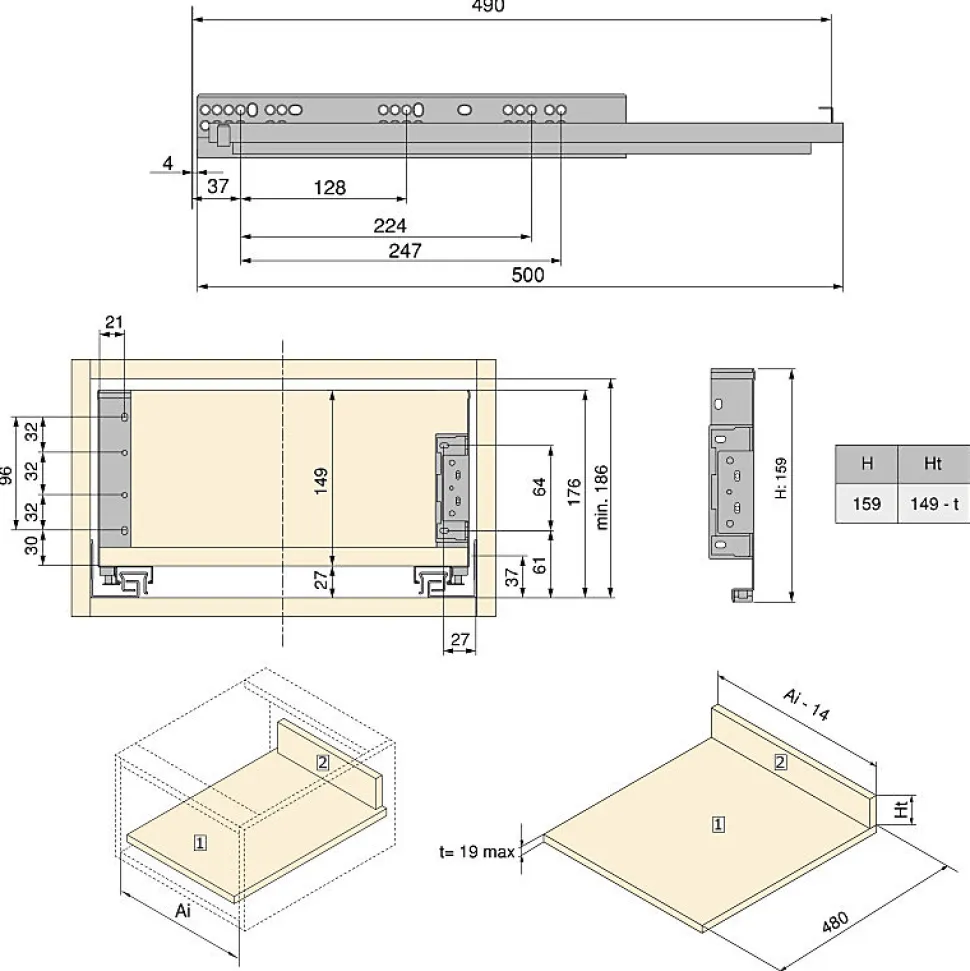 Le tiroir Simplex avec côtés métalliques est idéal pour les meubles de cuisine, salle de bain et maison, sans nécessiter d’usinage spécial.Il a une hauteur de 159 mm avec un design élégant, pour tiroirs d’une profondeur de 490 mm, offrant un grand volume intérieur et une finition moderne.Permet le réglage de la façade de ±2 mm en vertical grâce à une excentrique et ±1,5 mm en horizontal, avec réglage en hauteur grâce aux coulisses Silver L à extraction totale et fermeture amortie.Offre une capacité de charge de 25 kg, garantissant résistance et fluidité dans le mouvement.Fabriqué en acier avec une finition gris anthracite. VOIR LES MESURES DU PRODUIT DANS LES IMAGES. Le tiroir Simplex avec côtés métalliques est la solution la plus simple et la plus polyvalente pour disposer d’un tiroir à côtés métalliques dans des meubles de cuisine, salle de bain ou maison, sans nécessiter d’usinage spécial.Avec un design élégant et une hauteur de 159 mm, il offre un grand volume intérieur et une finition moderne. Son système permet le réglage de la façade du tiroir de ±2 mm en vertical grâce à une excentrique et de ±1,5 mm en horizontal. Il intègre également la coulisse Silver L à extraction totale, avec fermeture amortie et une capacité de charge de 25 kg, garantissant un mouvement fluide et stable.Le kit comprend deux côtés latéraux, un jeu de caches frontaux, un jeu de coulisses et les vis pour fixer le panneau avant. Il est fabriqué en acier avec une finition peinte gris anthracite ou blanc.