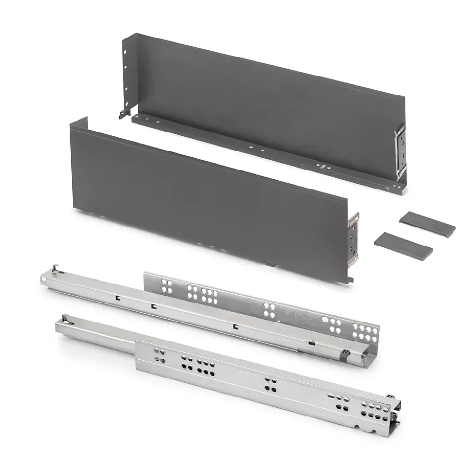 Le tiroir Simplex avec côtés métalliques est la solution la plus simple et polyvalente pour disposer d’un tiroir robuste, élégant et facile à installer dans vos meubles de cuisine, salle de bain ou maison. Avec une capacité de charge de 25 kg, une finition moderne gris anthracite et un système de réglage précis, il assure un rangement optimal et un mouvement fluide grâce à ses coulisses Silver L à extraction totale et fermeture amortie.