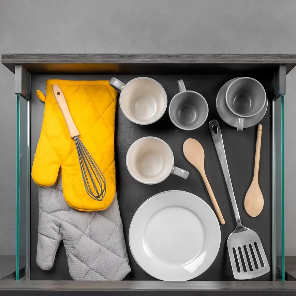 - Glissières synchronisées à sortie totale avec fermeture amortie pour un refermement silencieux et doux.