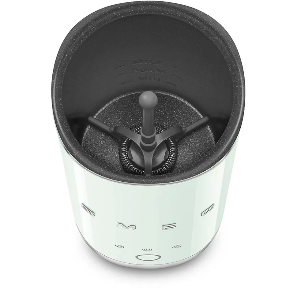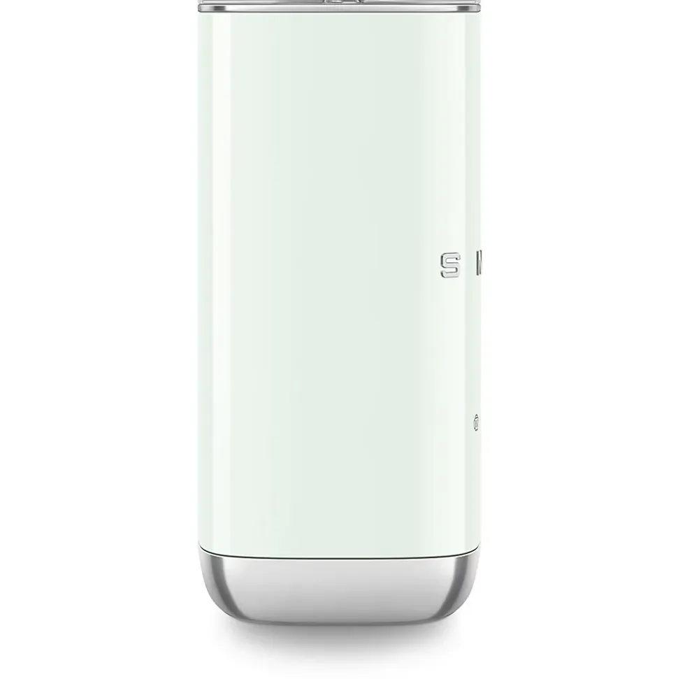 Emulsionneur de lait 500w 0.12 / 0.18l vert Smeg – Emulsionneur de lait Année 50 MFF02PGEU de SmegMousseur à lait électrique et facile à utiliser pour réaliser une mousse de lait crémeuse, chaude ou froide.Trois fonctions : lait chaud, mousse de lait chaude et mousse de lait froide pour préparer une grande variété de boissons.Revêtement antiadhésif en céramique et fouet amovible pour un nettoyage facileUn seul bouton multifonction pour préparer vos boissons. – Type de produit : Emulsionneur de lait.Esthétique : Années 50.Type : Mousseur à lait électrique.Puissance moteur : 500 W.Capacité minimum : 60 ml.Capacité maximale de moussage du lait : 120 ml.Capacité maximale de chauffage du lait : 180 ml.Tension : 220-240 V.Fréquence : 50 / 60 Hz.Power off activation time : 1 min.Product off power : 0.1 W.Longueur du câble d’alimentation : 60 cm.Type de commandes : Bouton.Base antidérapante : Oui.Arrêt automatique : Oui.Matériau du corps : Plastique.Body internal coating : Ceramic.Matériau du couvercle : Plastique.Couleur de la base : Chromé brillant.Matériau de la base : Plastique.Couleur du câble d’alimentation : Gris.Fonction lait chaud : Oui.Cold milk Foam function : Oui.Hot milk Foam function : Oui.Couleur : Vert.Dimensions (mm) : 200 x 93 x 93.Poids (kg) : 0.84.