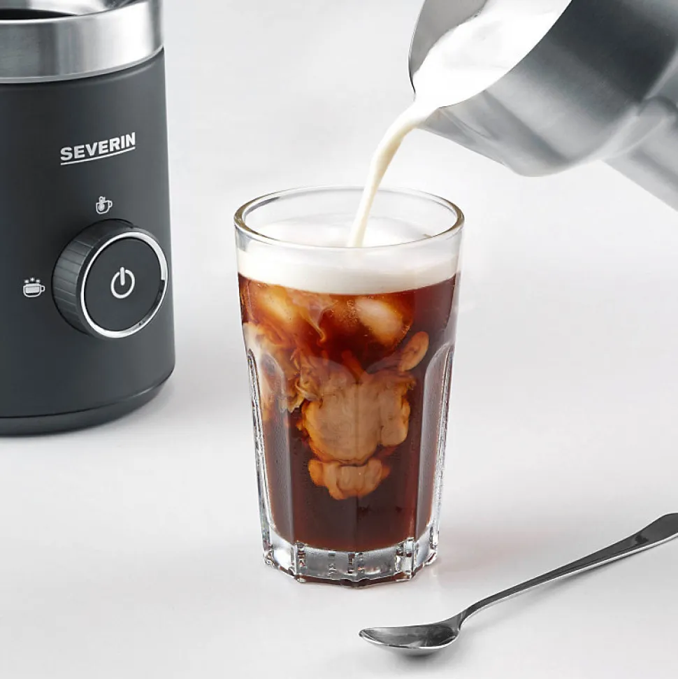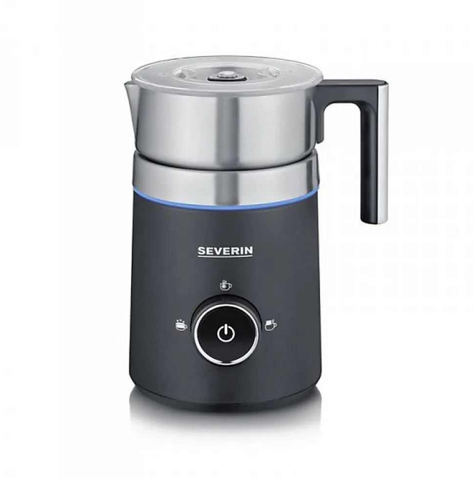 Emulsionneur de lait 500w 0.5l inox/noir Severin – Emulsionneur de lait/Chocolatière Spuma 500 Severin SM3585 simple et pratique pour un mousse de lait succulente. Easy-Select : bouton de commande rotatif pour sélectionner le programme souhaité : mousse à froid, mousse à chaud ou lait chaud, et chocolat chaud. Anneau lumineux LED (rouge/chaud ou bleu/froid) autour de l’appareil. Il indique si un programme chaud ou froid est sélectionné. Bec verseur fin : idéal pour réaliser des motifs de Latte Art. Ouverture dans le couvercle pour l’ajout progressif d’ingrédients pendant la préparation. – Type de produit : Emulsionneur de lait.Puissance : 500 W.Capacité : 50 cL.Couleur : Inox brossé noir mat.Sécurité contre la surchauffe.Arrêt automatique après deux minutes de non-utilisation.Rangement du cordon d’alimentation.Capacité du pot XXL : pour env. 120 – 260 ml de mousse ou env. 120 – 500 ml de lait chaud.Nettoyage facile lavable au lave-vaisselle.Accessoires interchangeables pour chauffer ou mousser.Dimensions (hxlxp) 23,6 x 19,5 x 15,5 cm.Poids : 1,60 kg.