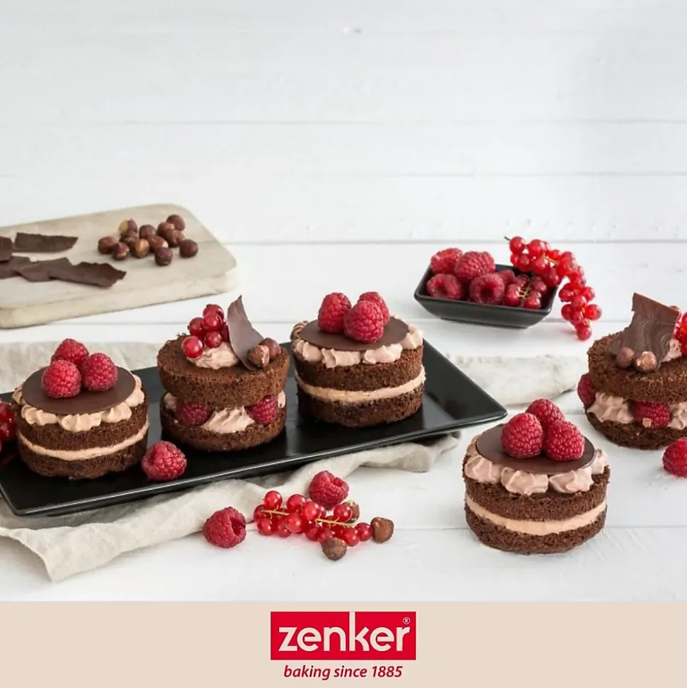 - DESCRIPTION: Lot de 2 plaques à pâtisserie Zenker avec 24 mini moules ronds amovibles Parfaites pour mille-feuilles et petits gâteaux