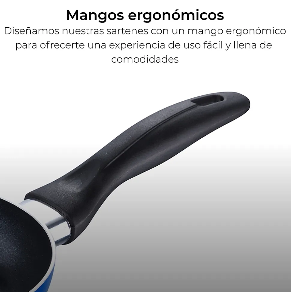Ensemble de 3 poêles à frire San Ignacio Navy Paradise en aluminium pressé.Poêle Ø16 x 3,5 cmPoêle Ø20 x 4,5 cmPoêle Ø24 x 4,5 cmPoignées ergonomiques en thermoplastique.Revêtement antiadhésif et fond diffuseur encapsulé.Compatible avec tous types de plaques de cuisson, y compris l’induction.Couleur bleue. Presse-agrumes électrique avec récipient de 1,2 L et deux cônes de pressage.