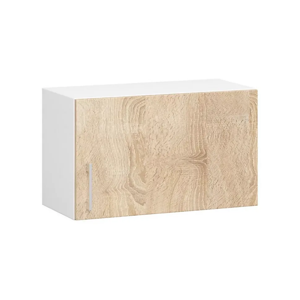 Ensemble de cuisine vitré AKORD LIMA 1.8m Blanc 180 cm 7 portes 1 tiroir façade Chêne Sonoma 8 étagères 180×44,5×203 cmL’ensemble de cuisine LIMA avec vitrine de 180 cm se compose d’un ensemble d’armoires de base conçues pour l’installation en cuisine. L’ensemble comprend le meuble sous évier S80 (80 cm) avec deux portes, le meuble sur pied étroit S40 (40 cm) avec un tiroir et des portes, le meuble suspendu W40 (40 cm) avec une porte, le meuble hotte suspendu W60 (60 cm) et l’élégant meuble suspendu W80 (80 cm) avec deux portes vitrées. L’ensemble est disponible en une seule version couleur – avec des corps blancs et des façades de couleur bois clair. Si nécessaire, l’ensemble peut être complété par des éléments supplémentaires disponibles dans la catégorie « Meubles de cuisine » de notre boutique en ligne.Dimensions:Largeur: 180cmProfondeur: 44,5cmHauteur: 203 cmMatériel: Panneau stratifiéSpécifications:Couleur:Façades: Chêne SonomaCorps de meuble: BlancFinition des façades: Finition mateMatériel: Panneau stratifiéNombre d’étagères: 8Nombre de portes: 7Porte: 7Nombre de tiroirs: 1Profondeur du tiroir: 43,5cmLargeur du tiroir: 31cmType de cabinet: Armoire sur piedType de porte: Porte battantePoids: 81,7 kgNombre d’éléments dans l’ensemble: 5