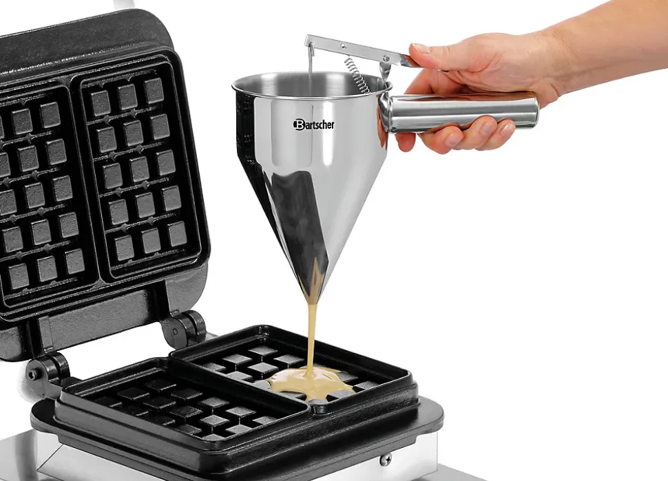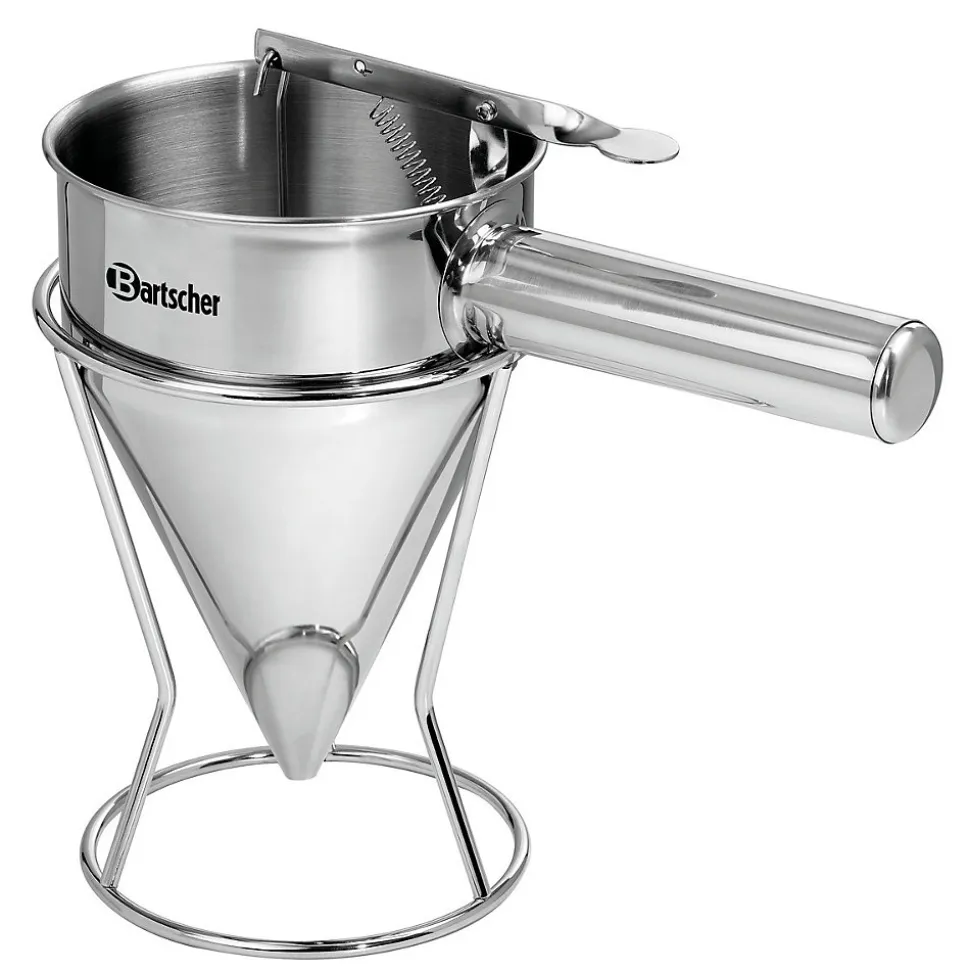 Entonnoir doseur de pâte liquide ou semi-liquide en acier inoxydable. Idéal pour les pâtes à crêpes ou à gaufres avec une ouverture de dosage de Ø8mm. #html-body [data-pb-style=TROE2A1]{justify-content:flex-start;display:flex;flex-direction:column;background-position:left top;background-size:cover;background-repeat:no-repeat;background-attachment:scroll}Entonnoir doseur de pâte à crêpes et gaufres ou préparations semi-liquides BartscherIndispensable pour réaliser un portionnage précis, propre et régulier des préparations liquides ou semi-liquides pour les professionnels de la restauration, de la boulangerie et de la pâtisserie, l’entonnoir doseur de pâte Bartscher de 800 ml est un accessoire pour crêpière idéal pour un dosage rapide des portions de pâtes à crêpes, gaufres, etc.Dosage précis – Conception en acier inoxydable – Ergonomie et praticitéGrâce à sa capacité de remplissage de 800 ml, cet entonnoir doseur permet de travailler efficacement sur des volumes adaptés à un usage profe