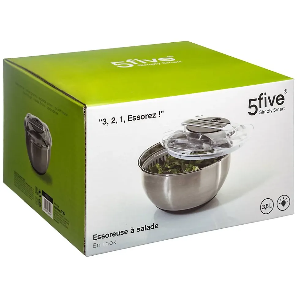 Essoreuse à levier inox 3,5LContenu : 1 essoreuseDimensions : L. 27.5 x P. 27.5 x H. 16 cmColoris : ArgentMarque : 5 five simply smart