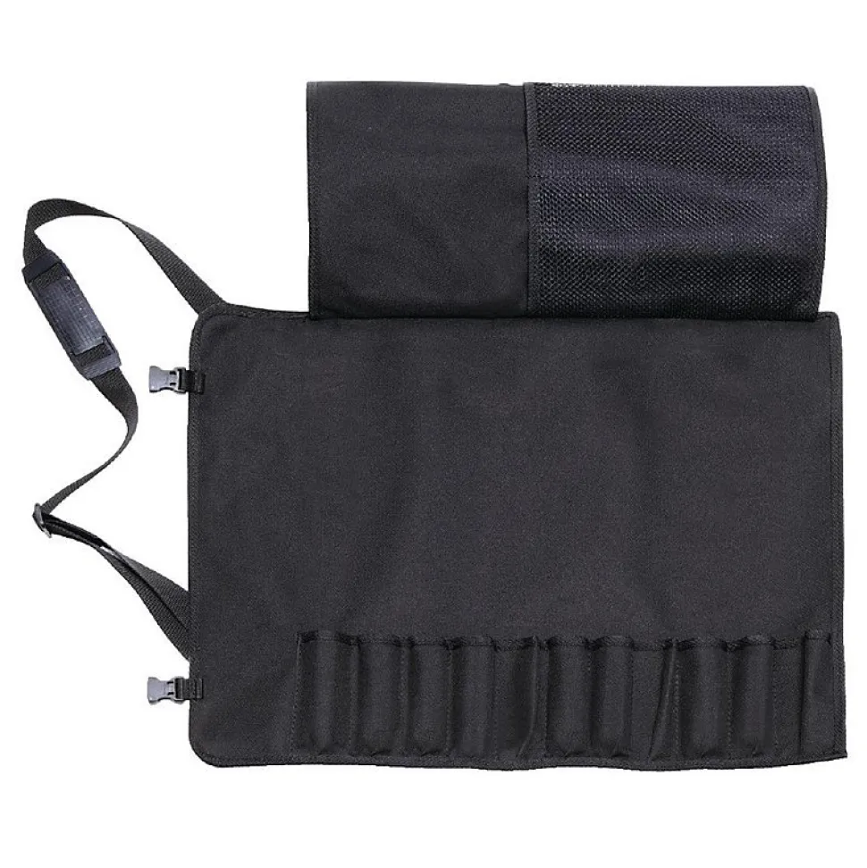 Étui à couteaux noir avec 11 emplacements Trousse enroulable en tissu de haute qualité pour ranger vos couteaux, logo Dick brodé. Vendue vide.Capacité: 11 couteaux (non fournis)Dimensions: 480(P)x 600(L)mmPoids: 800 gRangement à couteaux de qualité11 compartiments