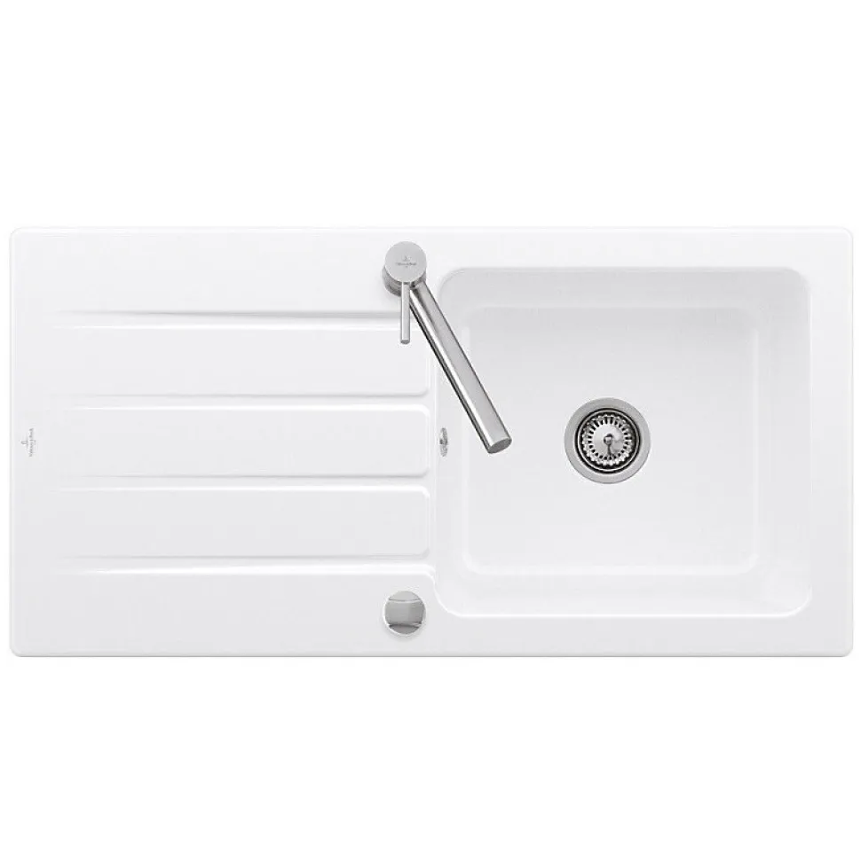 Contenu :1x Evier Villeroy et Boch1x Robinet GroheRéfs : 31368001_33601201 Caractéristiques du robinet :Installation monotrouBec pivotant jusqu’à 360 °Finition chrome avec la technologie Grohe StarLight Revêtement ultra résistant à la corrosion et au calcaireConduit d’eau isolé, sans plomb ni nickelCartouche en céramique 28 mm de haute qualitéBec avec mousseurLivré avec flexibles de raccordement souplesGarantie : 5 ansRéf : 31368001 Caractéristiques de l’évier :Pose par encastrement, recouvrementCéramiqueDisposant d’un égouttoirEvier réversibleL x l : 100 x 51 cm1 bacMeuble : 60 cmDécoupe du plan de travail de 97 x 48 cm2 trous percésVendu avec vidage automatiqueRéf : 33601201