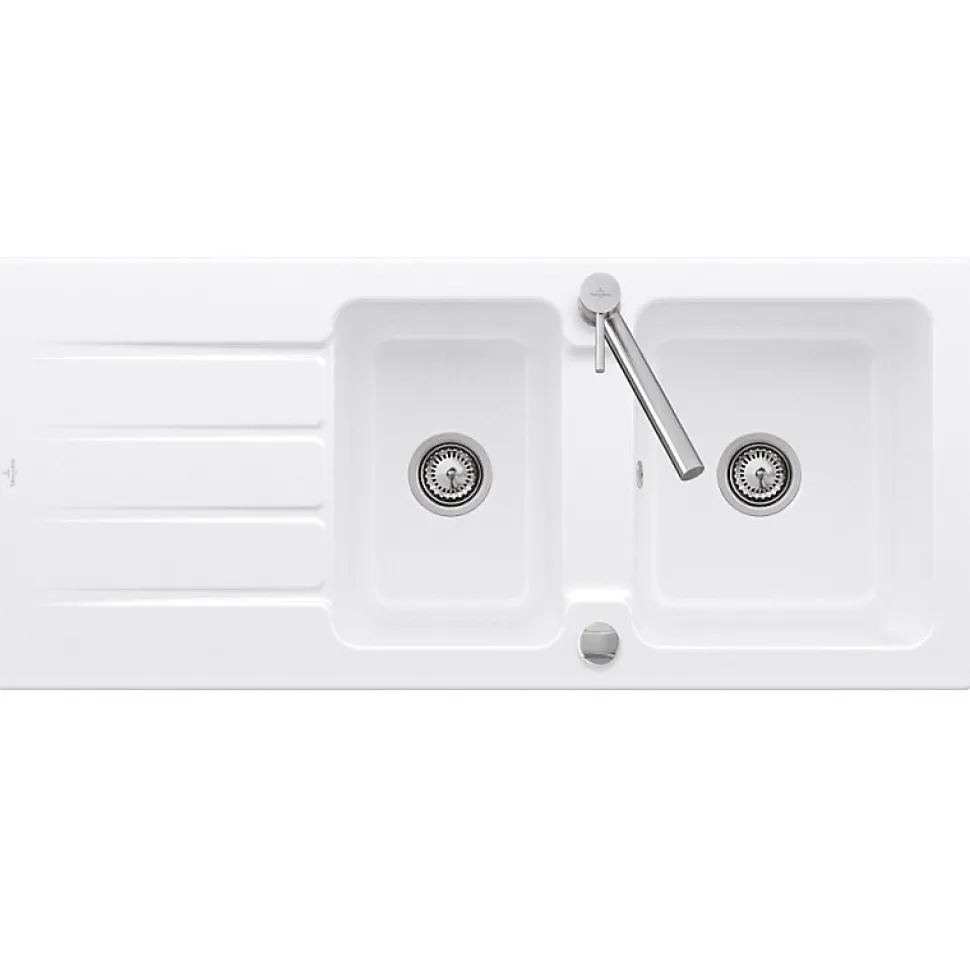 Points forts : Fabriqué en céramique haut de gammeFinesse et contours précisRésistance maximale aux chocs et aux rayuresCouleur qui résiste à la lumière et au tempsGrande facilité de nettoyage sur toute la surface Type de pose : évier pour encastrement par recouvrementEvier reversibleNombres de cuves : 2Garantie 2 ans Caractéristiques :Dimensions (L x l) : 116 x 51 cmEvier 2 bacsMeuble sous evier : 50 cmDécoupe du plan de travail : 83 x 48 cm2 trous percésEvier réversibleVendu avec vidage automatique Siphon 94060000 en option Points forts :Innovation Grohe Zero : conduit d’eau isolé afin d’éviter la présence de plomb et le nickelBec pivotant : permet d’optimiser la totalité de l’évierMécanisme ultra précis et durableGarantie : 5 ans Caractéristiques techniques du mitigeur :Type d’installation : Mitigeur cuisine monotrouZone de rotation de 360 °StarLight, technologie Grohe : revêtement tout chrome éclatant et ultra résistant à la corrosion et au calcaireGrohe Zero, technologie : conduit d’eau isolé – sans plomb ni nickelMécanisme Longlife, technologie Grohe : cartouche en céramique 28 mm de haute qualitéBec mousseur intégréLivré avec flexibles de raccordement souplesHauteur sous bec : 20,7 cmHauteur maximale du mitigeur de cuisine en cm : 33,2 cmProfondeur en cm : 22,3 cmRéférence : 31368001 Pour plus d’information, pensez à consulter la fiche technique du produit.