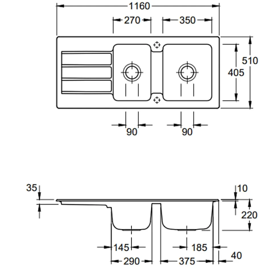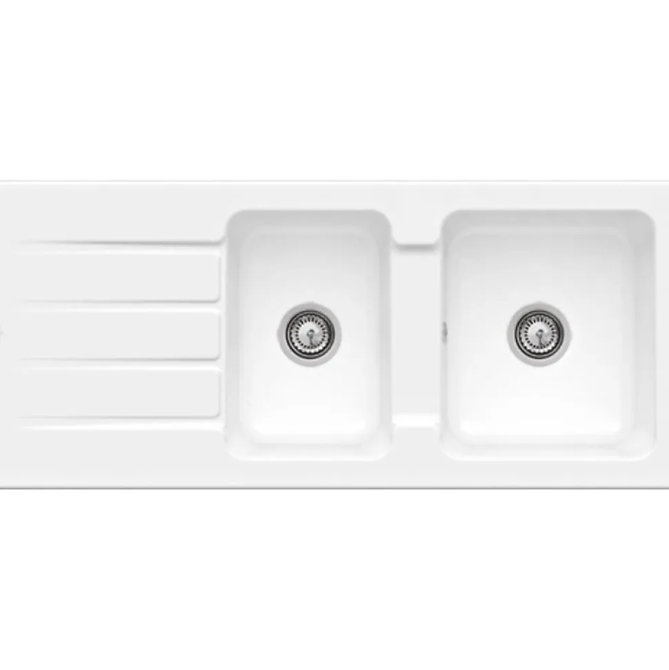 Avantages de l’Evier 1 bac et demi VILLEROY ET BOCH Architectura 80 Blanc Fabriqué en FranceCéramique haut de gammeFinesse et contours précis avec une esthétique moderneRésistance maximaleCouleur qui résiste à la lumière et au tempsGrande facilité de nettoyageMatières premières 100%sGarantie : 5 ans Caractéristiques techniques de l’Evier 1 bac et demi VILLEROY ET BOCH Architectura 80 Blanc Evier 1 bac et demiMatériau : céramiqueType de pose : évier pour encastrement par recouvrementChaque modèle dispose d’un égouttoirEvier reversible (l’egouttoir peut se mettre à gauche ou à droite)Couleur : BlancVendu sans vidage Dimensions de l’Evier 1 bac et demi VILLEROY ET BOCH Architectura 80 Blanc Profondeur des eviers : 22 cmDimensions (L x l) : 116 x 51 cmDimension minimale du meuble sous évier : 80 cmDécoupe du plan de travail : 113 x 48 cm2 cuves pouvant être fermées2 trous percés Siphon 94060000 en option