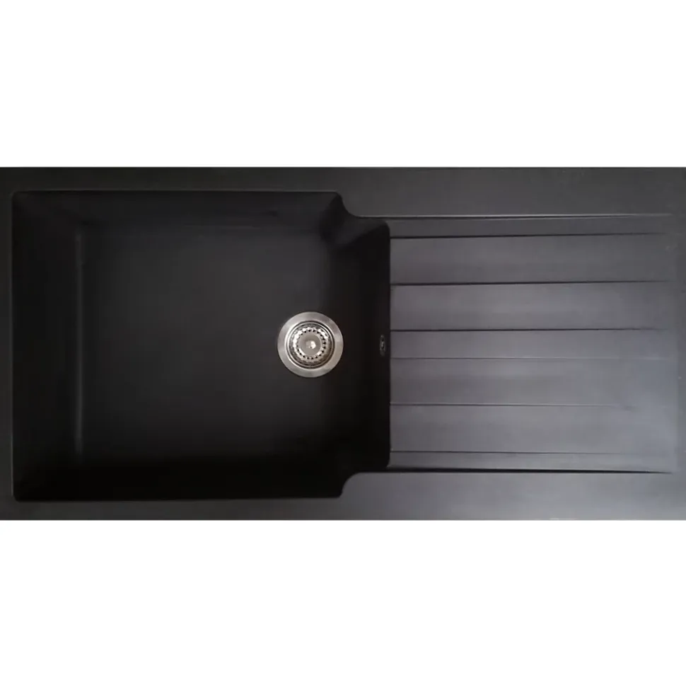 L’évier Sierra est simple, épuré, design et vous offre une résistance aux chocs et températures jusqu’à 230°. Composé d’une cuve et d’un égouttoir en résine noire, il est facile à poser et réversible. DESIGN ET QUALITE : Produit : Evier Matière : Résine (combiné de fibre de verre et de résine de synthèse résistant aux chocs) Couleur : Noir Type de produit : 1 cuve + 1 égouttoir Type de montage : A poser (dans un caisson de 60cm de largeur minimum) Résistance : Jusqu’à 230°c sans marquer Réversible : Oui Prémarquage : Oui (double marquage) Option d’évacuation : Siphon avec raccord pour lave-vaisselle et machine à laver inclus Kit de fixation : Inclus avec pattes de fixation Vidage : Standard avec trop-plein inclus (bonde à panier pour filtrage de résidus fournie) Notice d’installation : Incluse dans l’emballage DIMENSIONS: – Longueur : 1000mm – Largeur : 500mm – Profondeur : 210mm – Côtes d’encastrement (en cm) : 97,6 L x 47,6 H – Dimensions de la grande cuve ( en cm) : 52,5 L x 43 l x 21 P – Diamètre évacuation : 90mm NORMES : Certification ACS : Accréditation de Conformité Sanitaire. GARANTIE : Evier : 15 ans Pièces détachées : Pas de garantie Conseils d’installation : 1 – Découper le plan de travail aux dimensions d’encastrement (respecter les côtes sur le dessin) 2 – Déposer l’évier pour qu’il puisse s’encastrer dans le plan de travail Conseils d’entretien : – Il est conseillé de nettoyer le produit avec une solution savonneuse (type liquide vaisselle), ne jamais utiliser de substances acides ou abrasives. Les tâches de calcaire peuvent être évitées en séchant la robinetterie après son utilisation – Rincer à l’eau claire – Utiliser un chiffon doux – Eviter d’utiliser des produits abrasifs: détergent et solvants