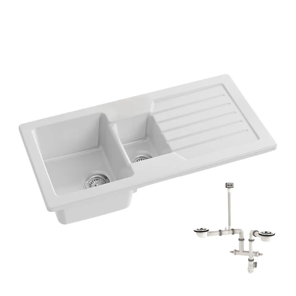 - Bac et demi : Comprend une cuve principale généreuse et une cuve plus petite parfaite pour le rinçage et le pré-triage des ustensiles.