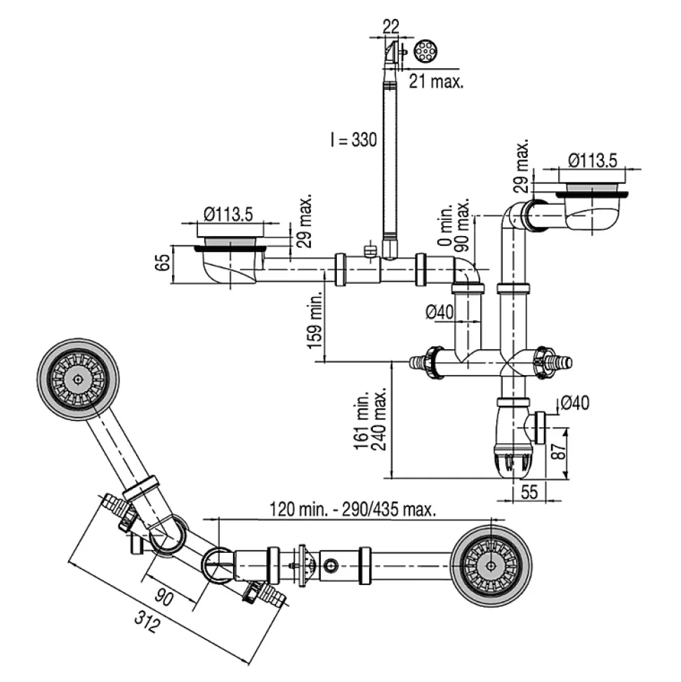 - Spacieux bac principal : Offre suffisamment d’espace pour les tâches quotidiennes telles que la vaisselle et la préparation des repas.