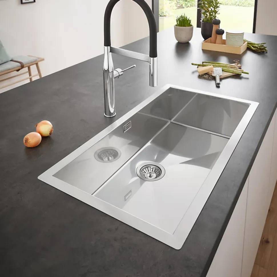 - Résistant et éclat préservé : Fabriqué en inox GROHE StarLight AISI 304 de haute qualité, cet évier est conçu pour résister à l’usure quotidienne tout en conservant leur éclat.