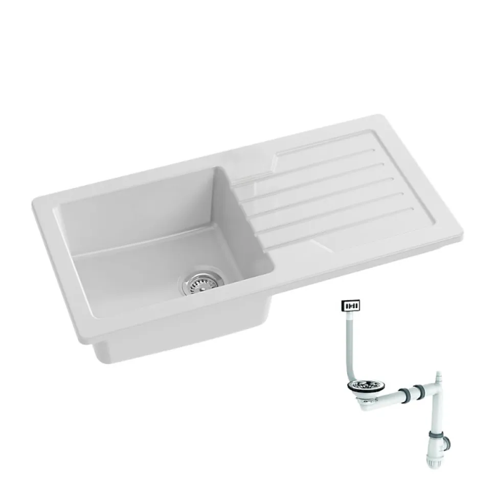 - Réversible : Avec ses deux trous prépercés. l’évier peut être installé à gauche ou à droite selon vos besoins d’aménagement.