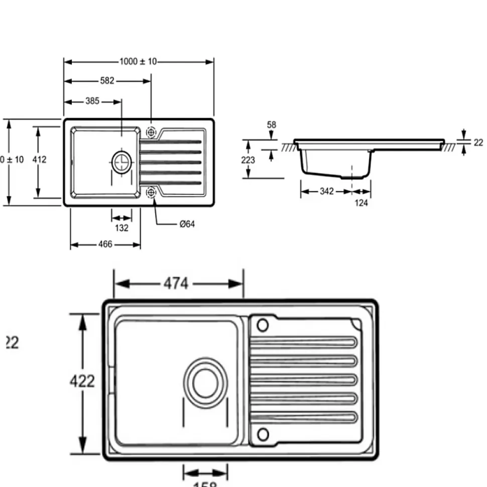 - Réversible : Avec ses deux trous prépercés. l’évier peut être installé à gauche ou à droite selon vos besoins d’aménagement.