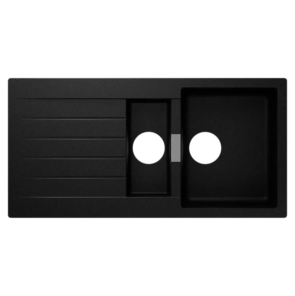 Evier à encastrer en composite quartz noir 1,5 bacs et égouttoir l. 50 x H. 30,4 x P. 19,7 cm GoodHome Torla