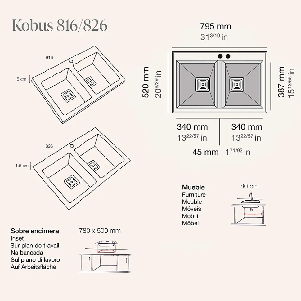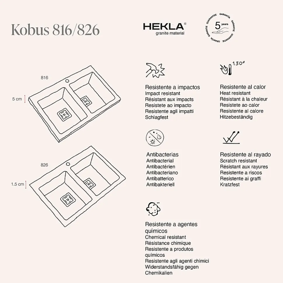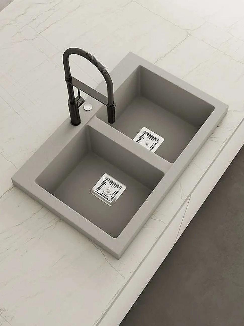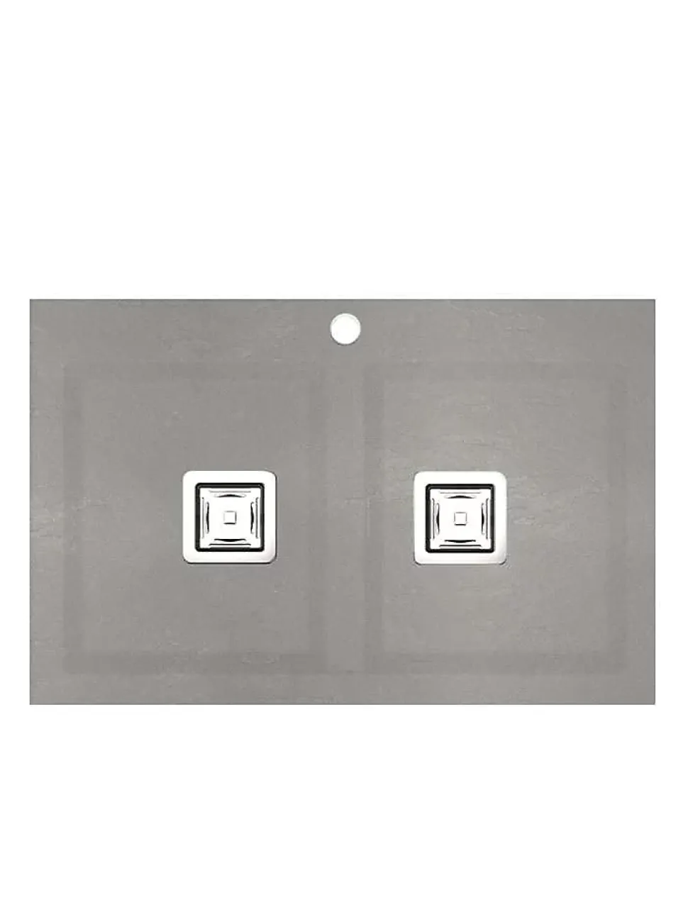 Evier à encastrer POALGI, KOBUS 816, Granit, Gris Ash, 80 cm, 2 bacs