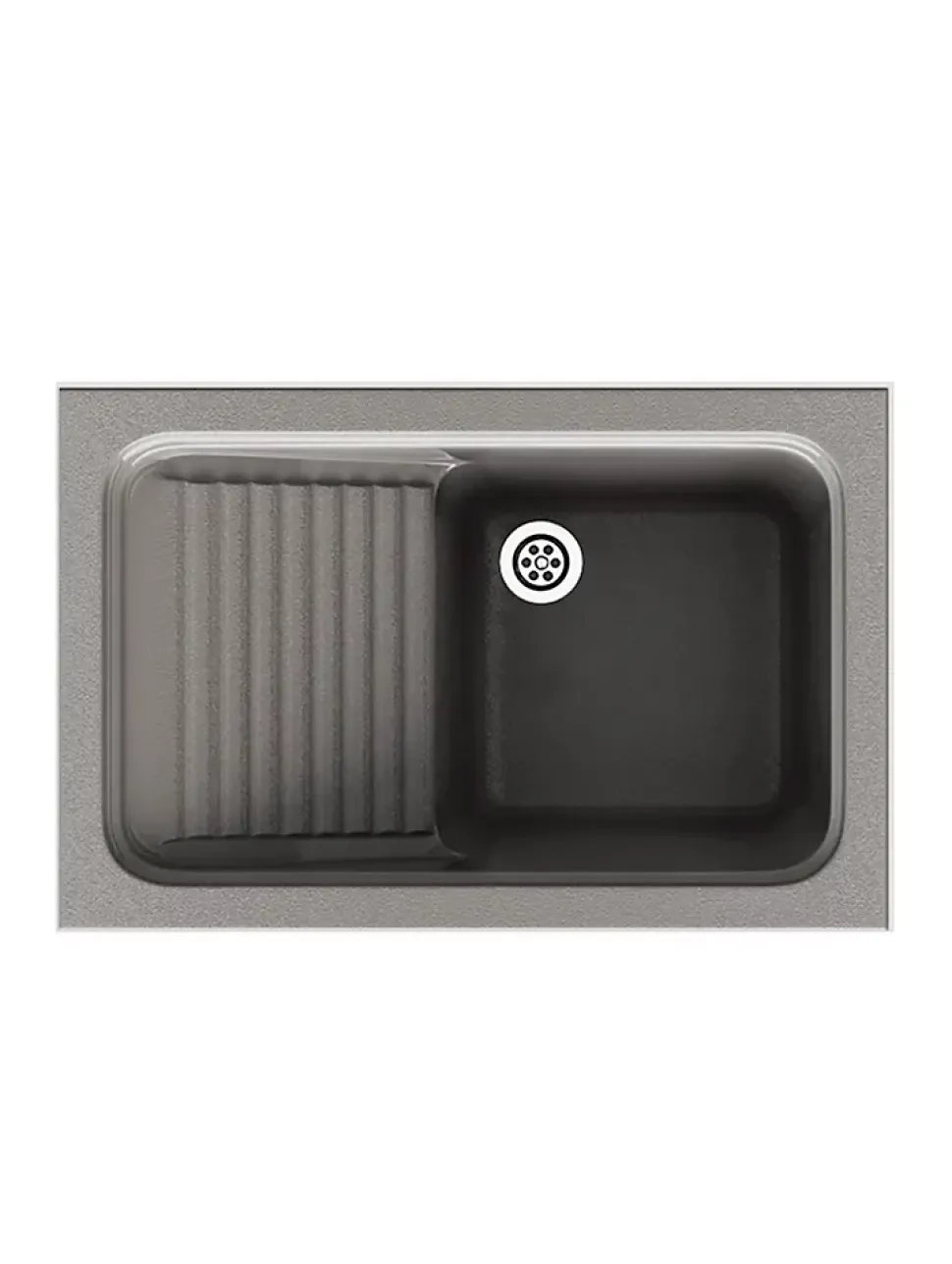 Evier ou bac à laver à installation sur plan (à encastrer) avec une cuve et un égouttoirIdéal pour buanderie, cellier ou arrière-cuisineInclus : une bonde ronde.Résistance à l’impact : 12 kgf/m2Résistance à la compression : 1595 kgf/m2Résistance à la flexion : 5110 MPARésistance thermique : 130 oCDureté Barcol (935) : 45Résistance aux tâchesAvec des détergents : Pas de changementAvec des produits anticalcaires : Pas de changement