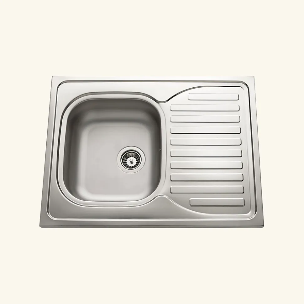 POINTS FORTS : CARACTÉRISTIQUES : • Équipements inclus : bonde(s), siphon, trop plein, tuyaux d’évacuation • Marque : sans marque • Matériau : Inox • Type de pose : à poser • Positionnement égouttoir : réversible • Coloris : Inox • Emplacement robinetterie : non percé • Nombre de bacs : 1 bac • Poids net (Kg) : 1.4 • Trop plein : oui • Sous-meuble : 80 cm • Longueur (mm) : 800 • Largeur (mm) : 600 • Longueur d’encastrement (mm) : non disponible • Largeur d’encastrement (mm) : • Grande dimension cuve 1 (mm) : 410 • Petite dimension cuve 1 (mm) : 360 • Profondeur cuve 1 (mm) : 150 • Diamètre bonde cuve 1 (mm) : 90 • Grande dimension cuve 2 (mm) : non disponible • Petite dimension cuve 2 (mm) : non disponible • Profondeur cuve 2 (mm) : non disponible • Diamètre bonde cuve 2 (mm) : non disponible • Bon à savoir : ce produit ne présente pas de spécificités supplémentaires • Vidage : manuel • Référence vidage : le vidage est déjà inclus