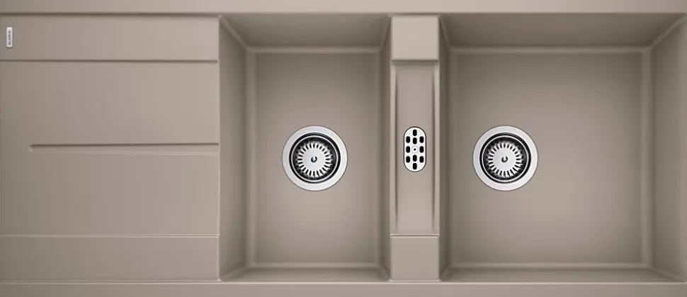 Caractéristiques de la gamme METRA- Deux grandes cuves très profondes- Egouttoir pratique, utilisable comme surface de travail complémentaire- Bondes à panier Ø 90 mm inox- Siphon inclus- Garantie 10 ans sur SilgranitCaractéristiques techniques du BLANCO METRA 8SFinition SilgranitSous meuble 800 mmDécoupe 1140 x 480 mm – R15Cuves 400 x 430 x 190 mm / 275 x 430 x 190 mmDimensions 1160 x 500 mm—Les éviers en SILGRANIT de BLANCO séduisent par l’élégance des coloris et un design attractif.Le SILGRANIT se compose à 80 % de granit naturel. Lié à une résine acrylique et des pigments colorants, le granit dévoile des propriétés inégalées : résistance, hygiène, nombreuses couleurs disponibles, stabilité des coloris dans le temps, etc.La surface à pores fins et structure particulièrement fermée, crée un matériau très agréable au toucher, imitant la pierre tout en restant soyeux.Grâce à ses exceptionnelles propriétés, le SILGRANIT se caractérise par une facilité d’entretien et un degré de résistance aux rayures et aux chocs encore jamais obtenus jusqu’ici sur des éviers de cuisine de synthèse en couleur.Propriétés des éviers de cuisine et des cuves simples ou double en SILGRANIT :- Facilité d’entretien encore jamais inégalée grâce aux caractéristiques particulières du SILGRANIT